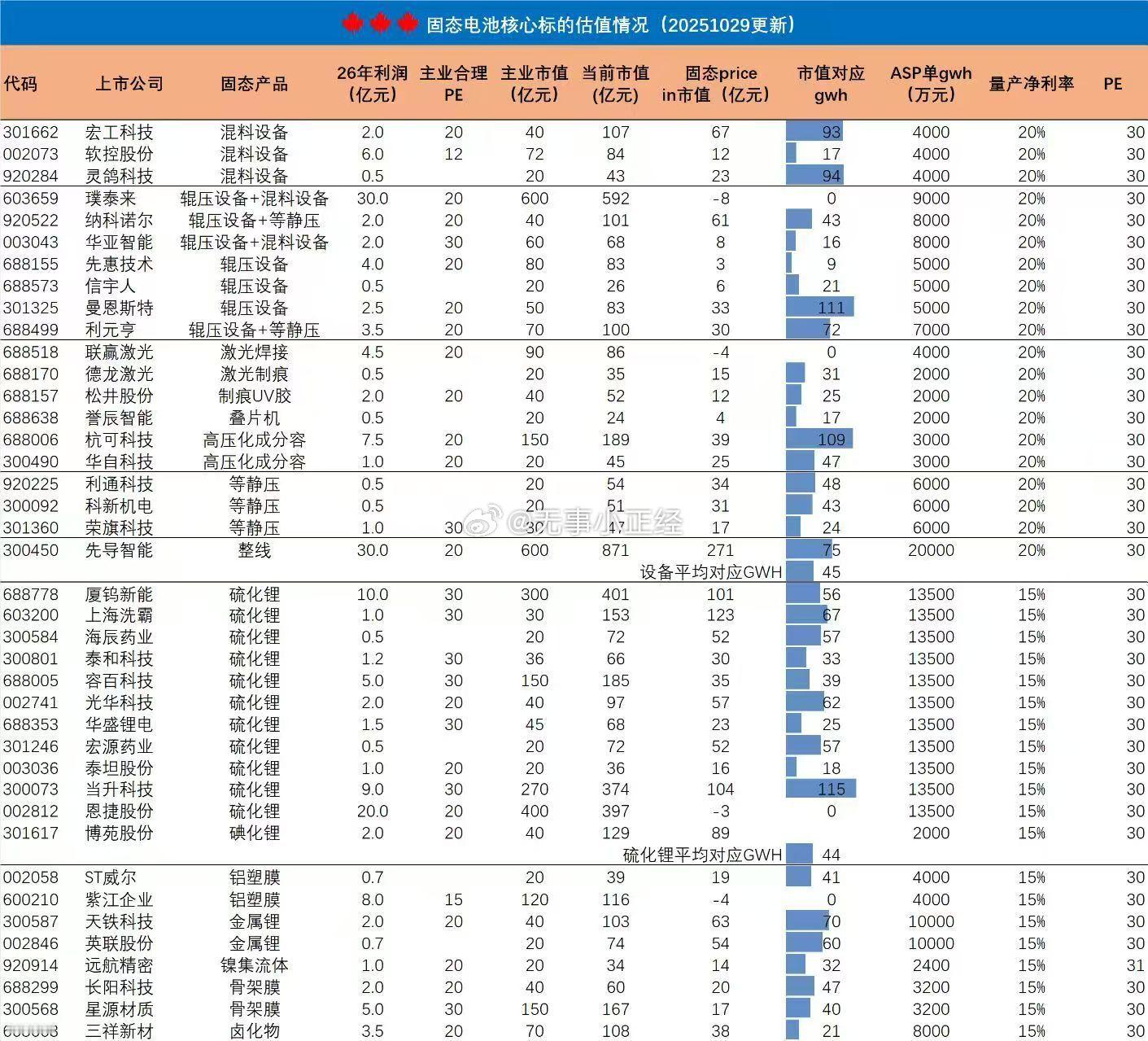 固态电池核心标的估值