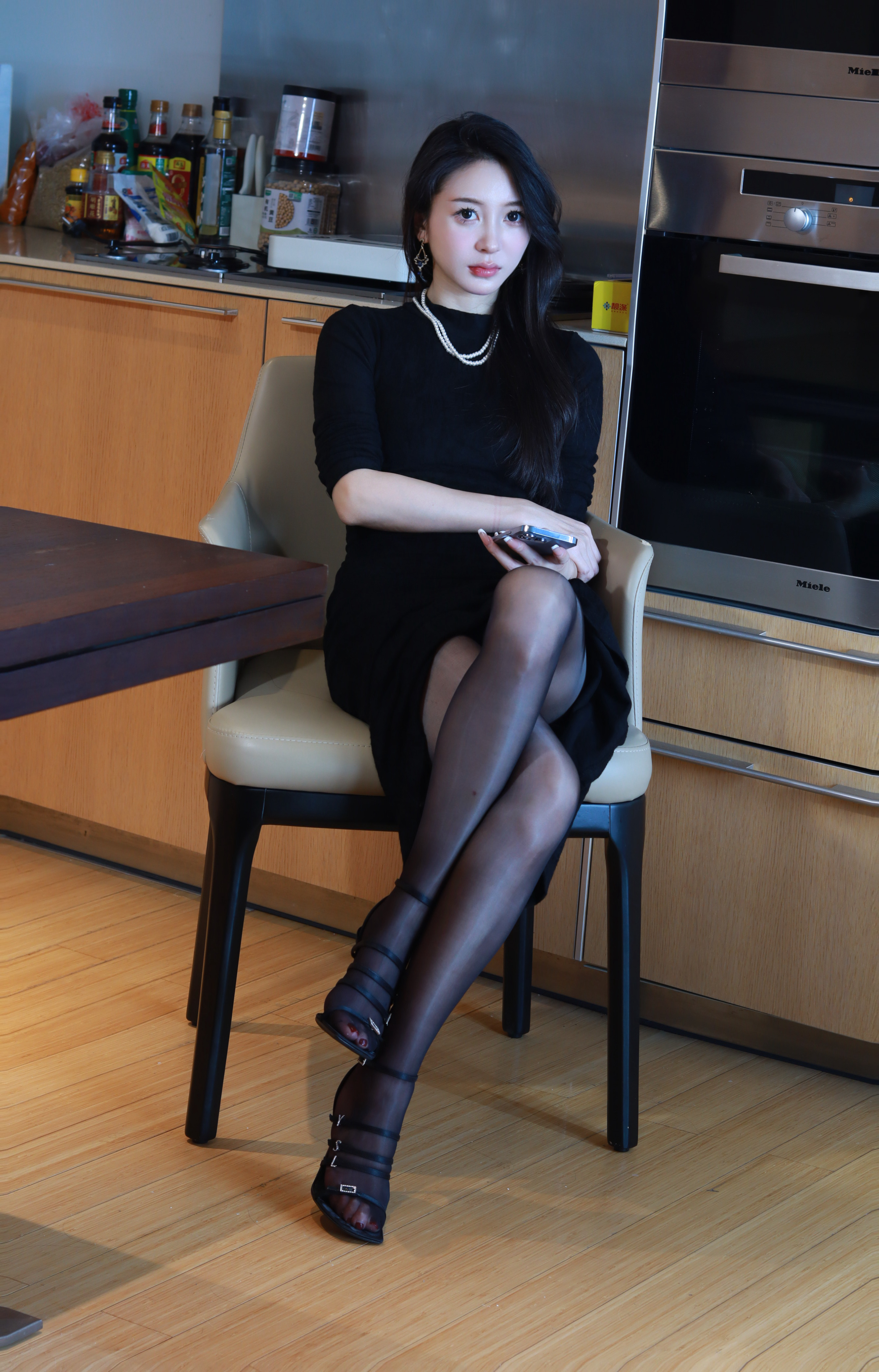 油亮黑绫LingTouch,绫吊带袜「琉光」8D无缝裆连裤袜