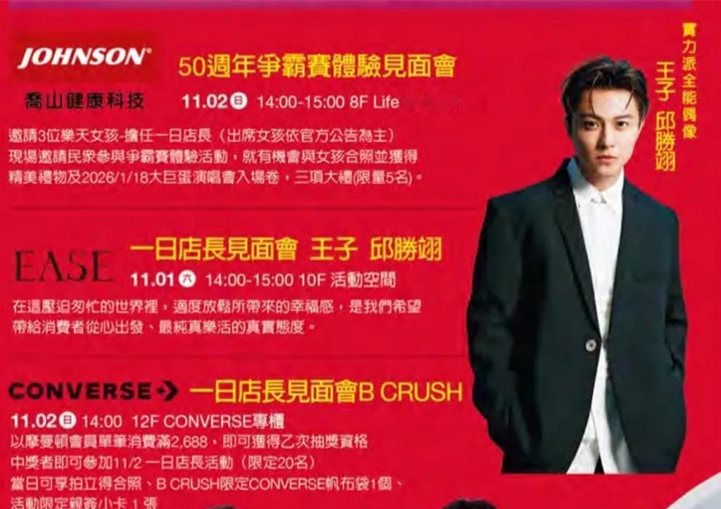 王子(邱胜翊)上海演唱会取消了~还有一个在台湾的一日店长活动也取消了~