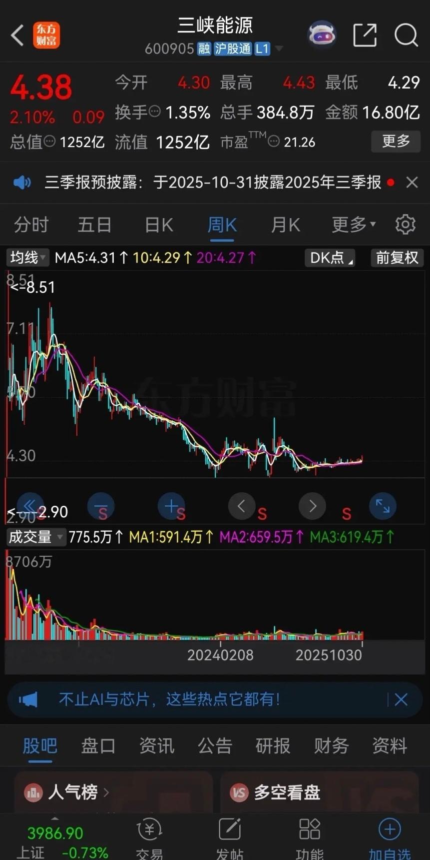 铁树开花了!三峡能源今天居然逆势大涨。大盘今天一路跳水大跌,收盘三大股指全线下挫