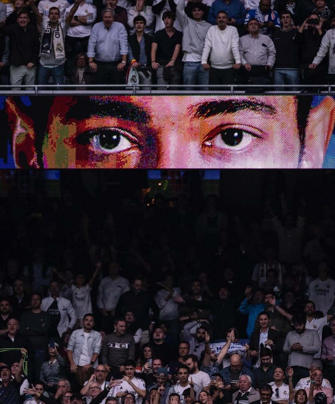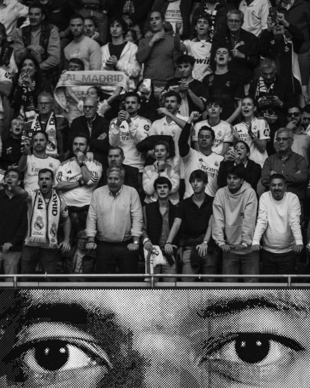 皇马[超话]皇马2比1巴萨国家德比 黑白色调·龟贝熊三巨头球迷看台的眼部特写