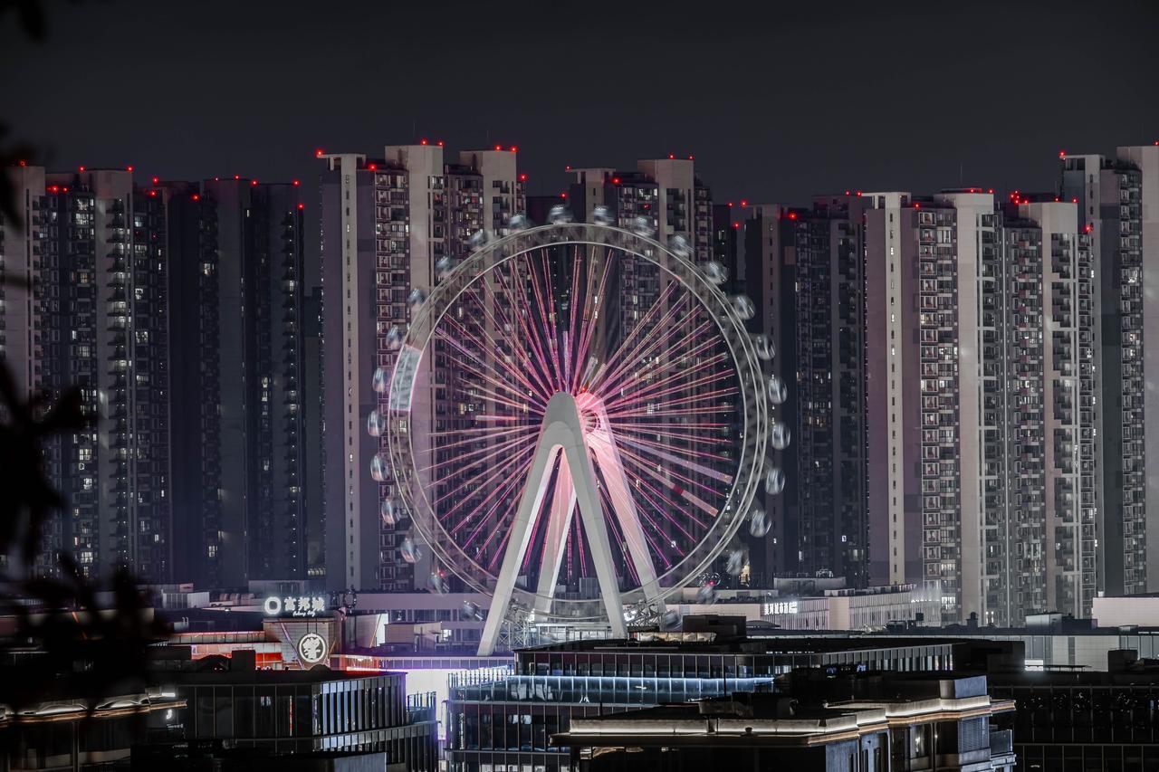 天马行空胡乱调色之凤凰山顶遥望富邦商圈!摩天轮为四张hdr堆叠,其他都是单次曝光!宁波北仑 北仑凤凰山