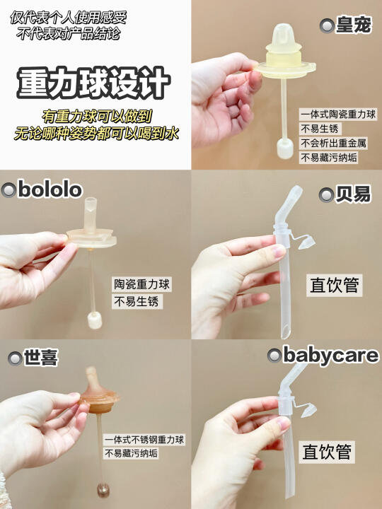 有重力球更适合小宝宝,各种姿势都可以喝到水。优先选择陶瓷重力球的,不易发霉生锈。直饮吸管的相对更适合大月龄的宝宝。
