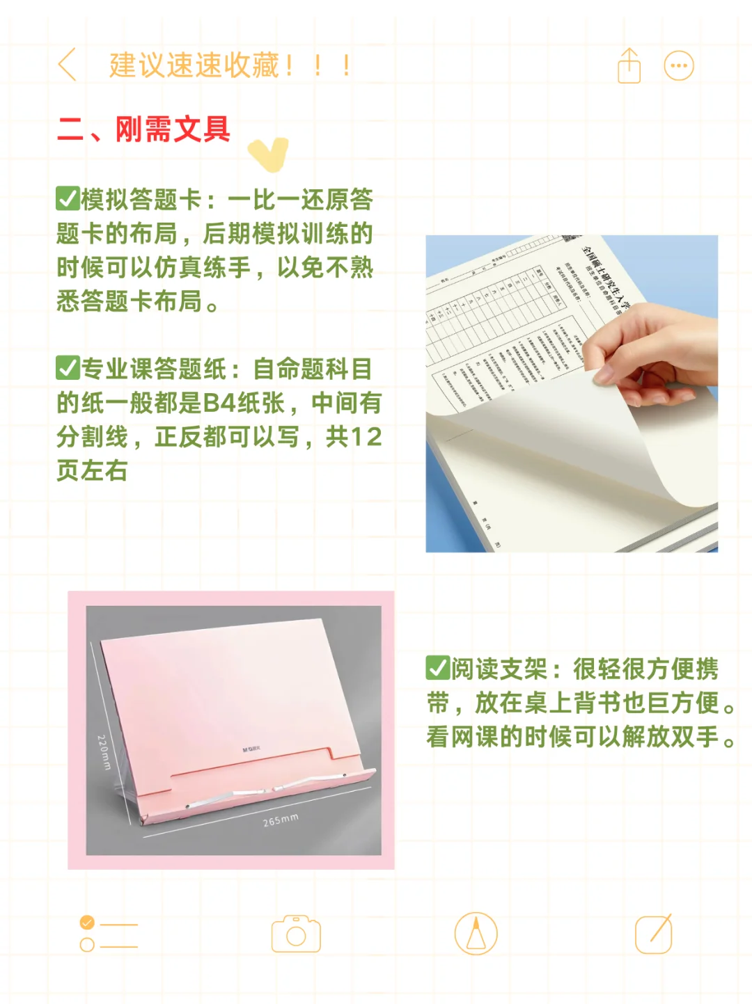 ✅肖秀荣精讲精练+1000题+肖四肖八(后面买也行,防止店铺商家跑路) ✅数学题册:李永乐660+李林880+李林108。高考数学100分以下的,再补充做一下《三大计算》,加强计算能力 ✅手译本:大间距阅读刷题本,一边做阅读一边记笔记、划分句子、记生词,超级好用! ✅精翻手册:全彩印!每个词都有翻译!每个题都有解析!哪里不会翻哪里,省时省力~ ✅直液笔:pdd上10块钱不到能用好久~ ✅本子:推荐满乐文、国誉…的活页本,适合做散装的笔记,尽量选横纹或者格子纹。