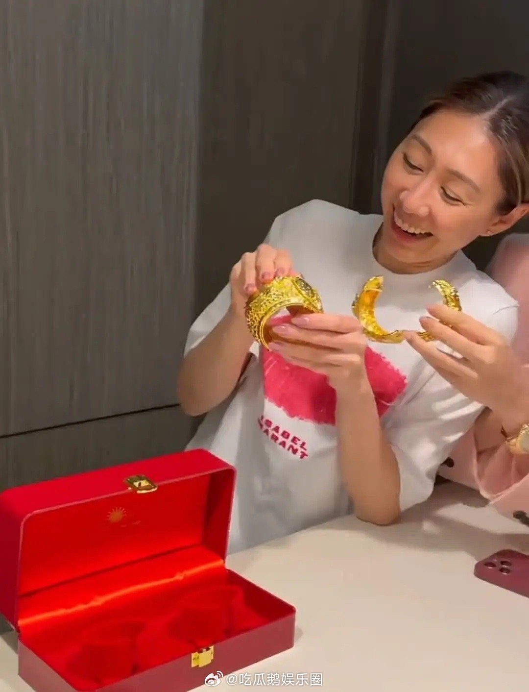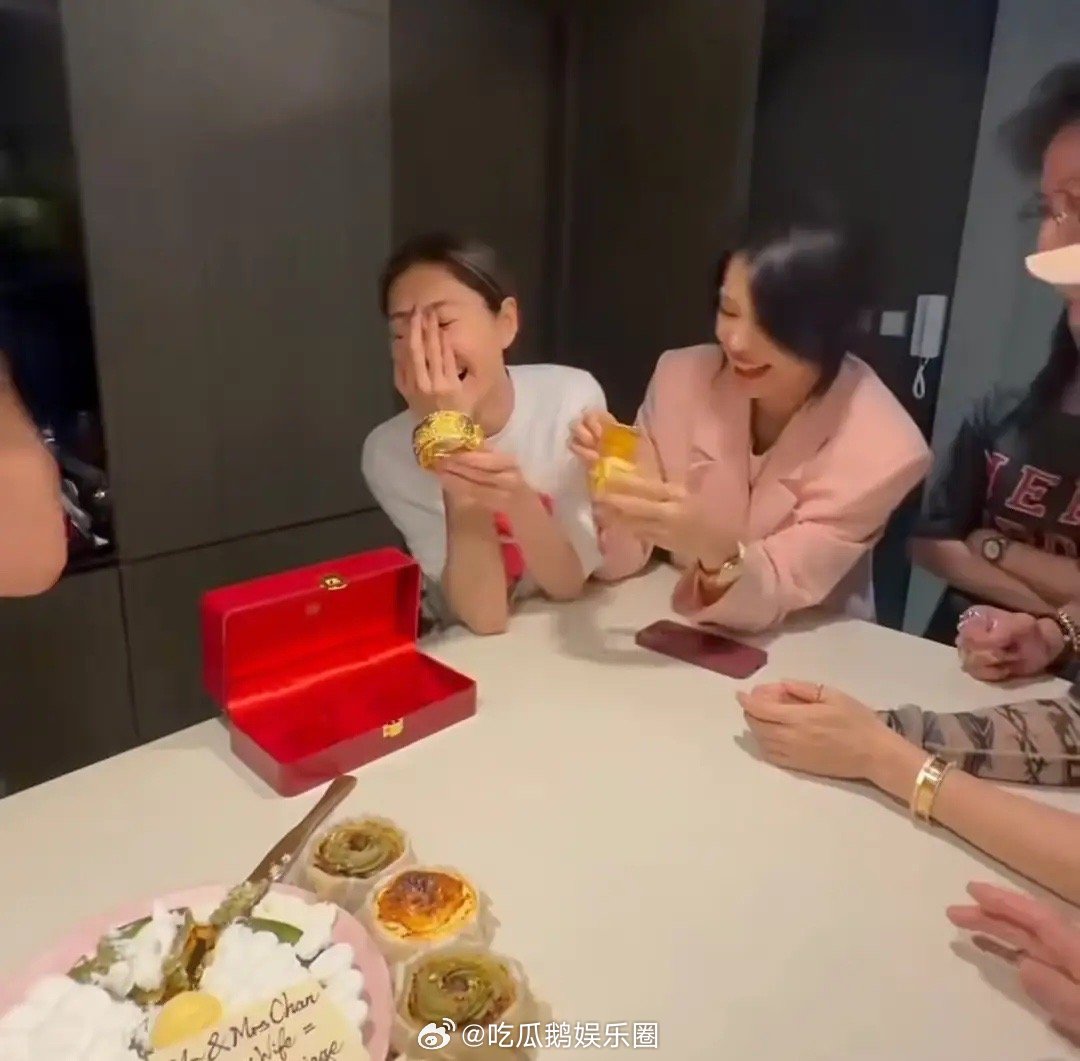 胡杏儿送新婚姐妹纯金龙凤镯,胡定欣笑得合不拢嘴,素颜孕相明显