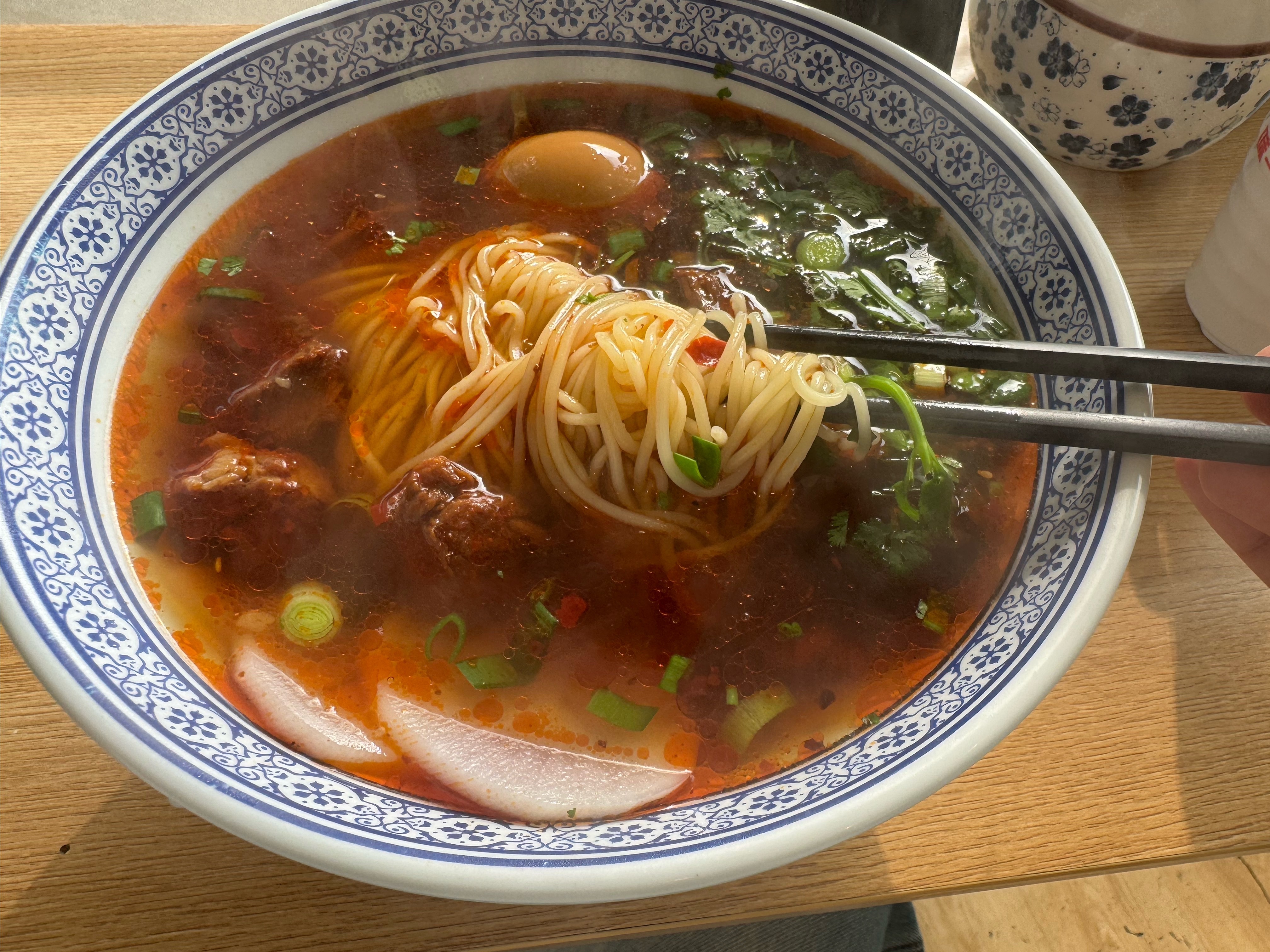 哎,早上没有办法。在高铁站外面吃个面条。我对吃的几乎没什么讲究,但我还是得说太坑