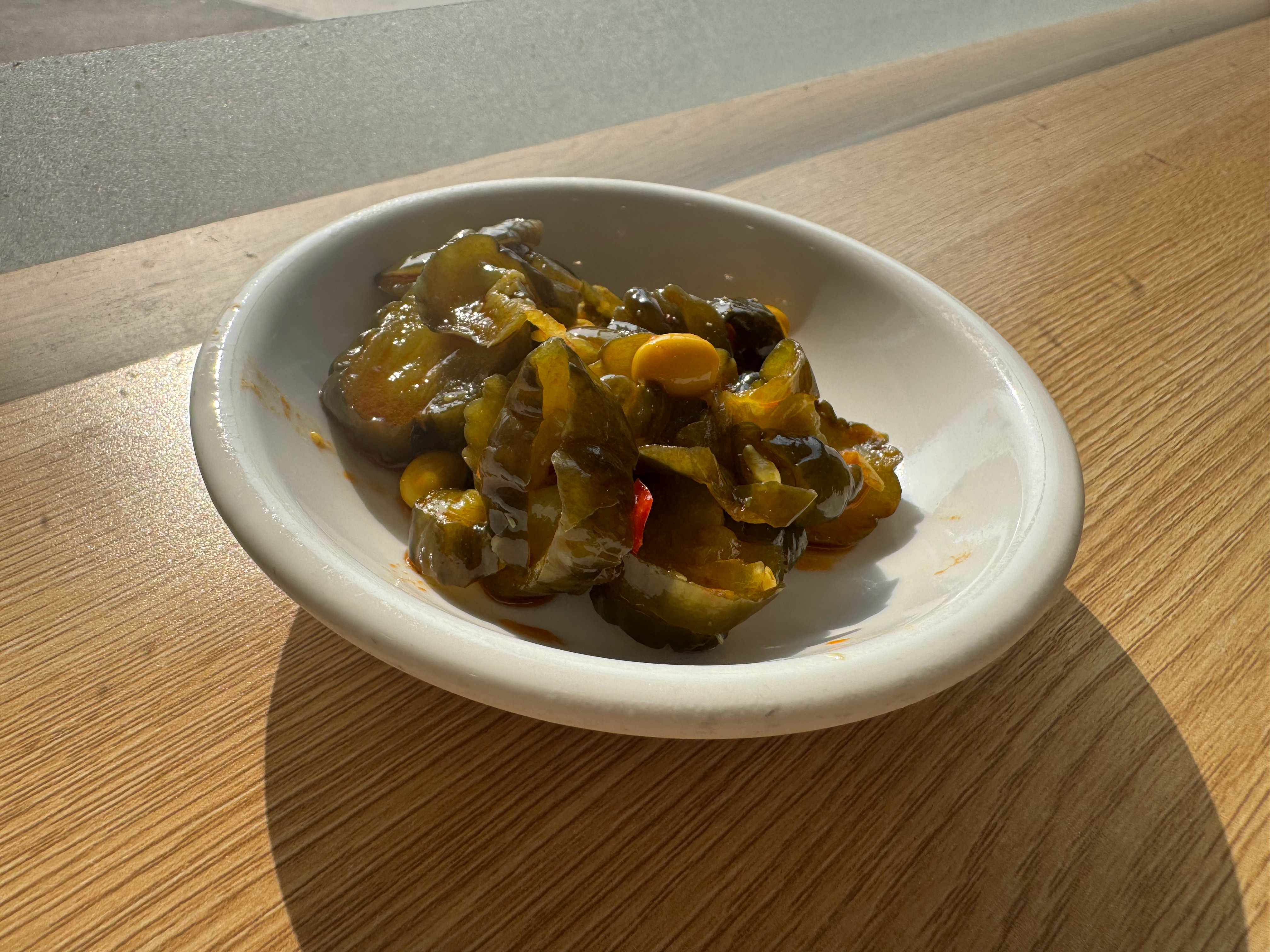 我还在想有什么凉菜,然后服务员直接拿了个小碟子,往里面放了这个咸菜。