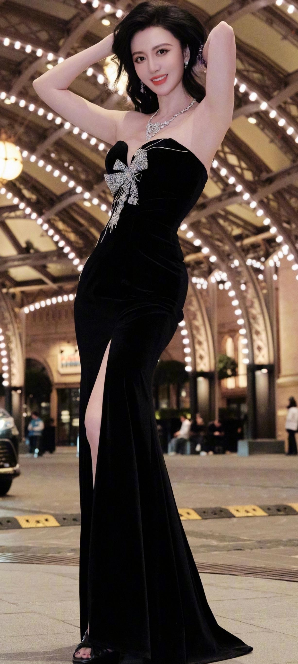 张萌,优雅黑裙,闪耀珠宝,自信女神风范!气质黑裙搭配 张萌 哪些女人越看越有魅力 明星时尚