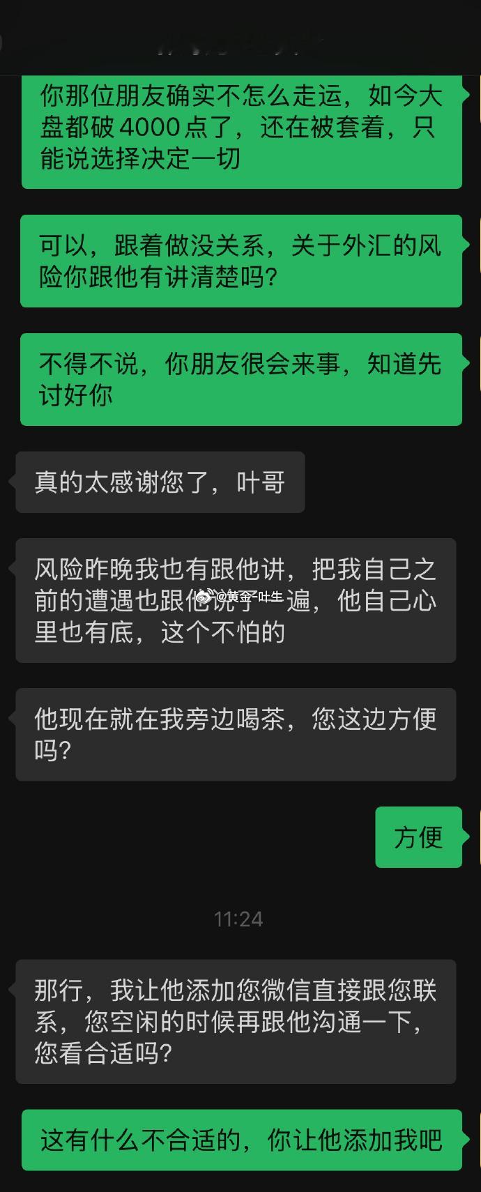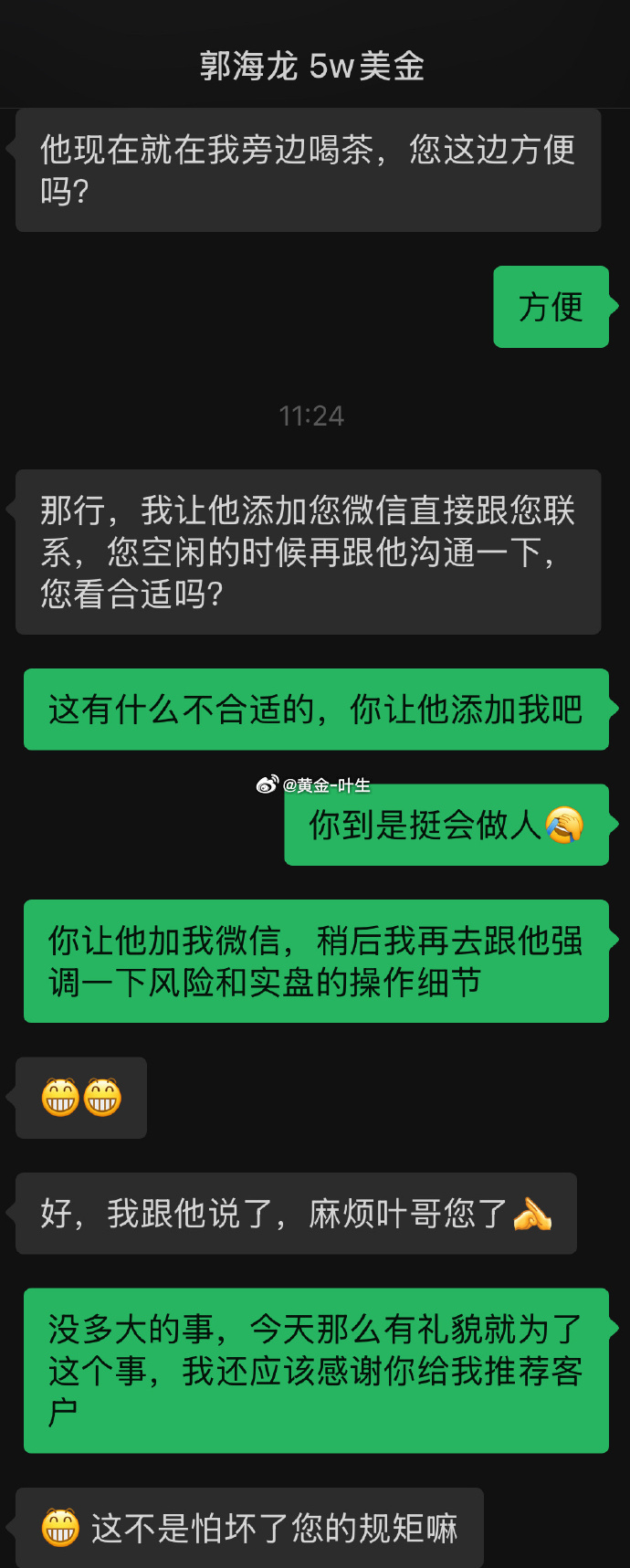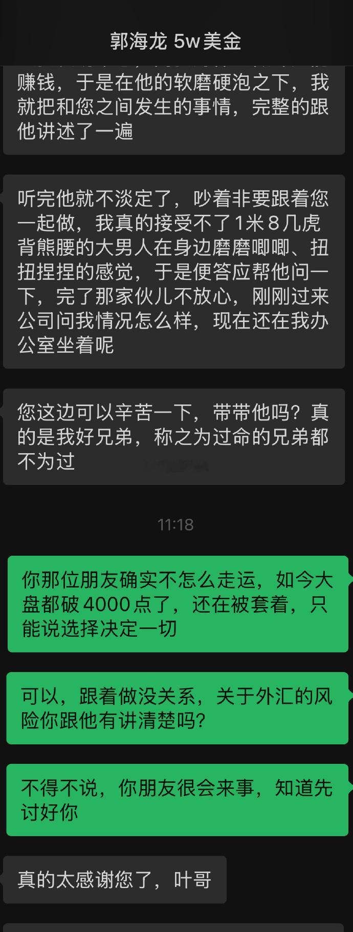 在这里非常感谢实盘郭先生对我工作的支持和认可,以及对实战团队的信任[作揖],前几天安全出金后介绍朋友一起加入到叶生实盘当中。郭先生不忍心看好友在亏损的道路上继续走下去,特意过来与我沟通一下让我顺便带一带。叶生我作为实盘的掌舵者,真诚对待每一位实盘朋友,同时也希望我这艘小船,早日能够带领大家一起抵达成功的彼岸[yeah]。