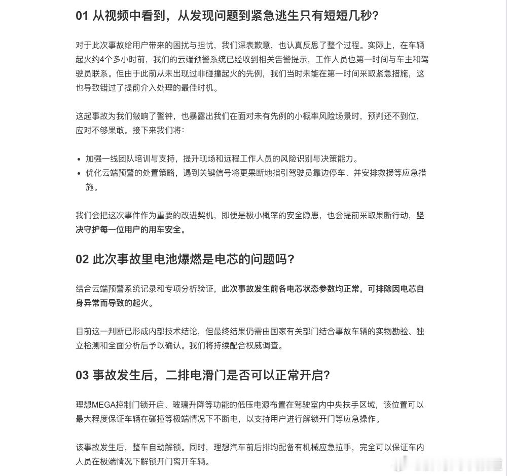 胖哥汽车频道[超话] 理想汽车:起火事件尚未形成最终的技术结论。