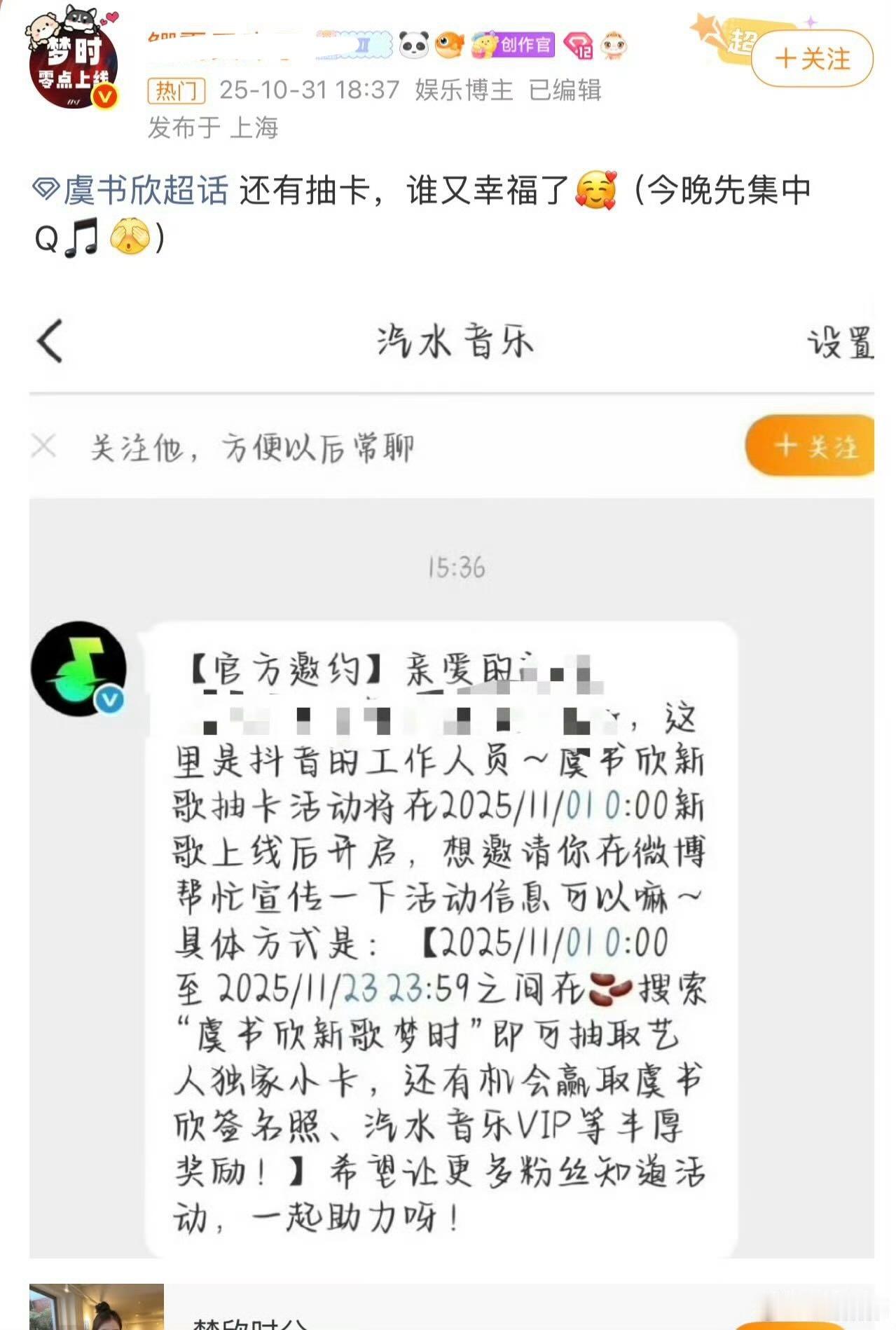 虞书欣新图原来是抽卡才能偷着发,而且没有公示是汽水的运营一个个私信大粉通知的,要