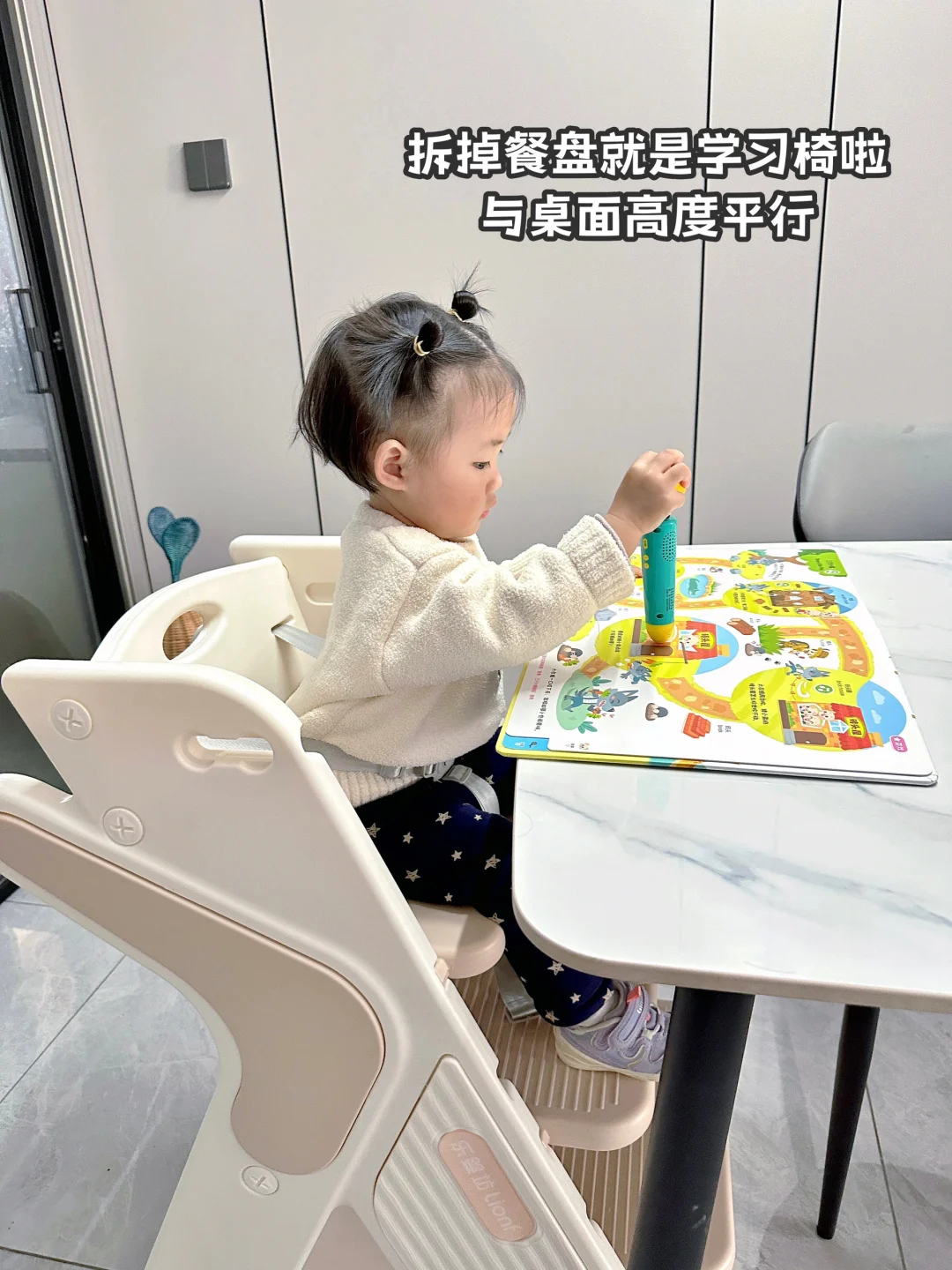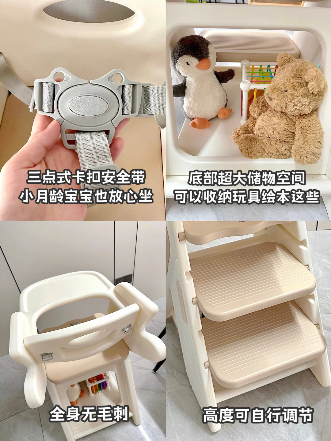 才100➕谁懂它的含金量啊!! 既可以是餐椅也可以是学习椅 一步到位!!真的巨巨巨值!! 只需要把餐盘一拆就大变身啦 踏板高度是可以调节的 满足不同年龄段的身高需求 底部三角结构非常稳固 用到十几岁没问题 还可以收纳玩具这些 主打一个实用!! 强烈推荐给所有有娃的家庭