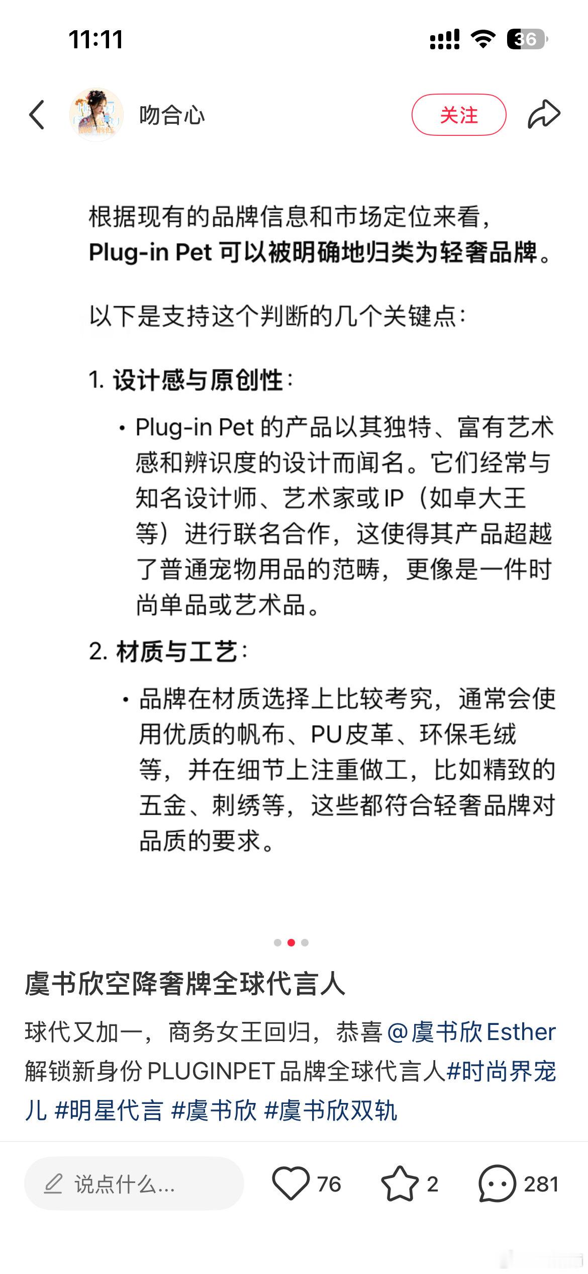 新代言官博官宣前才100多人关注[柯基] 虞书欣一代言又奢牌了又商务女王了,行吧蓝血狗链子可以了吧