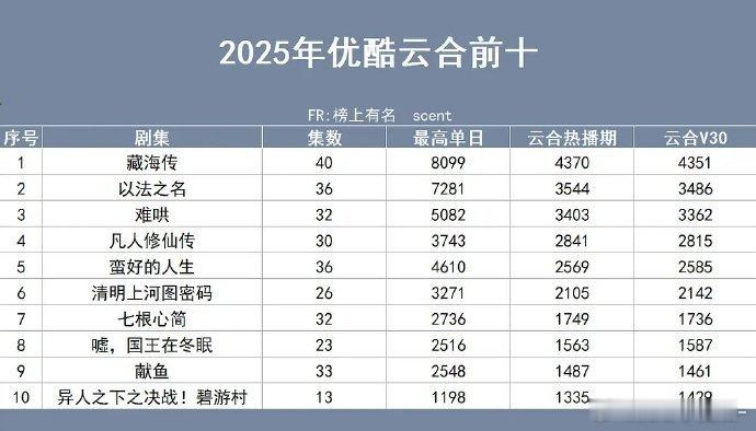 2025年三平台🐧🥝👖云合前十