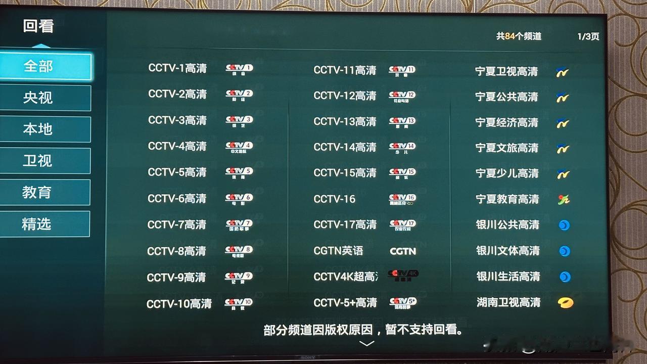 现在看电视想看个回看,你猜怎么着,有好多台看不了回看,本来现在看电视的人就不太多,遇到自认为好看或错过几集想回看,可就是看不成。 以前只有个别台看不成回看,如中央台3、5、8,地方台也就甘肃卫视,现在到好,好多台都看不成回看。中央台3、5、5+、中央台4k;地方台如上海东方、黑龙江、吉林、辽宁、陕西、甘肃、青海、四川,这么多台都看不了回看。虽然有9个省卫视上了4 K,图像清晰、色彩保满,分辨率也高了,看电视比以前舒服,也亮了不少,可没一个能看回看,如果所有电视跟以前一样都能看回放该多好啊!