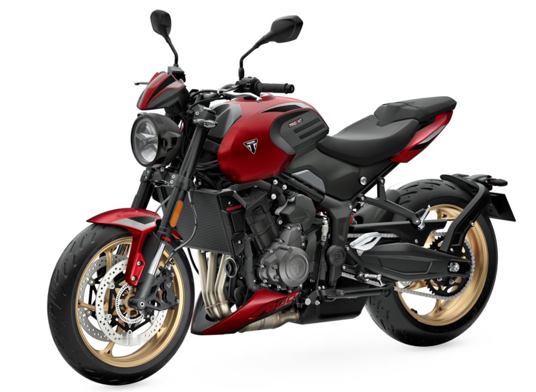 安全及电子配置方面,新车具备弯道 ABS、倾斜感应 TCS 控制,搭载 6 轴 IMU 惯性测量仪,配备电子油门,提供公路、运动和雨天三种骑行模式,标配双向快排、辅助换挡及巡航控制。以上功能均可通过 3.5 英寸圆形 TFT 仪表调整,还能通过 My Triumph 蓝牙系统连接智能手机。