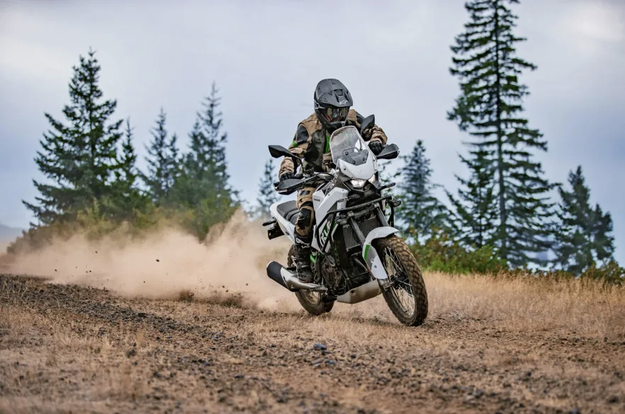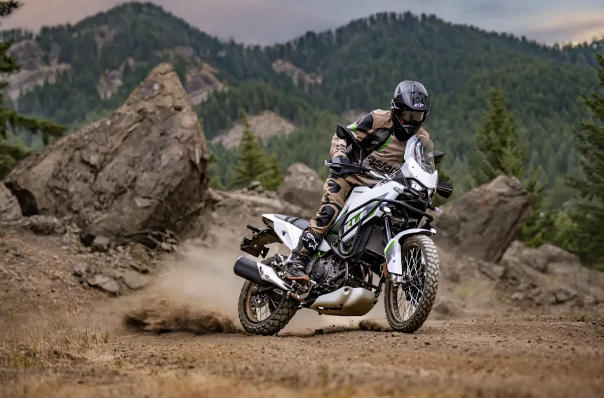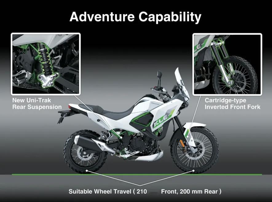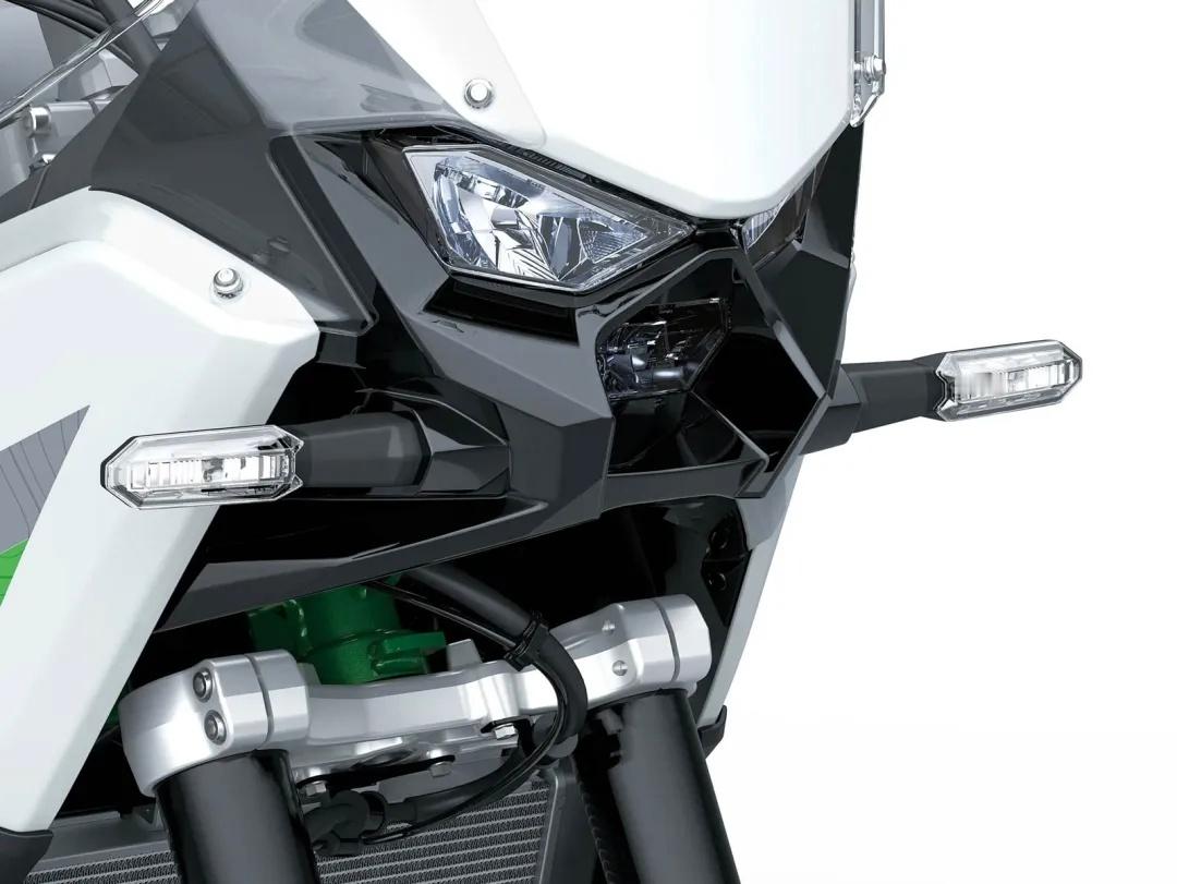 新车采用了拉力赛风格的设计语言,高耸的风挡、紧凑的LED大灯和修长的车身线条,既体现了功能导向,又保持了川崎的家族设计特征。