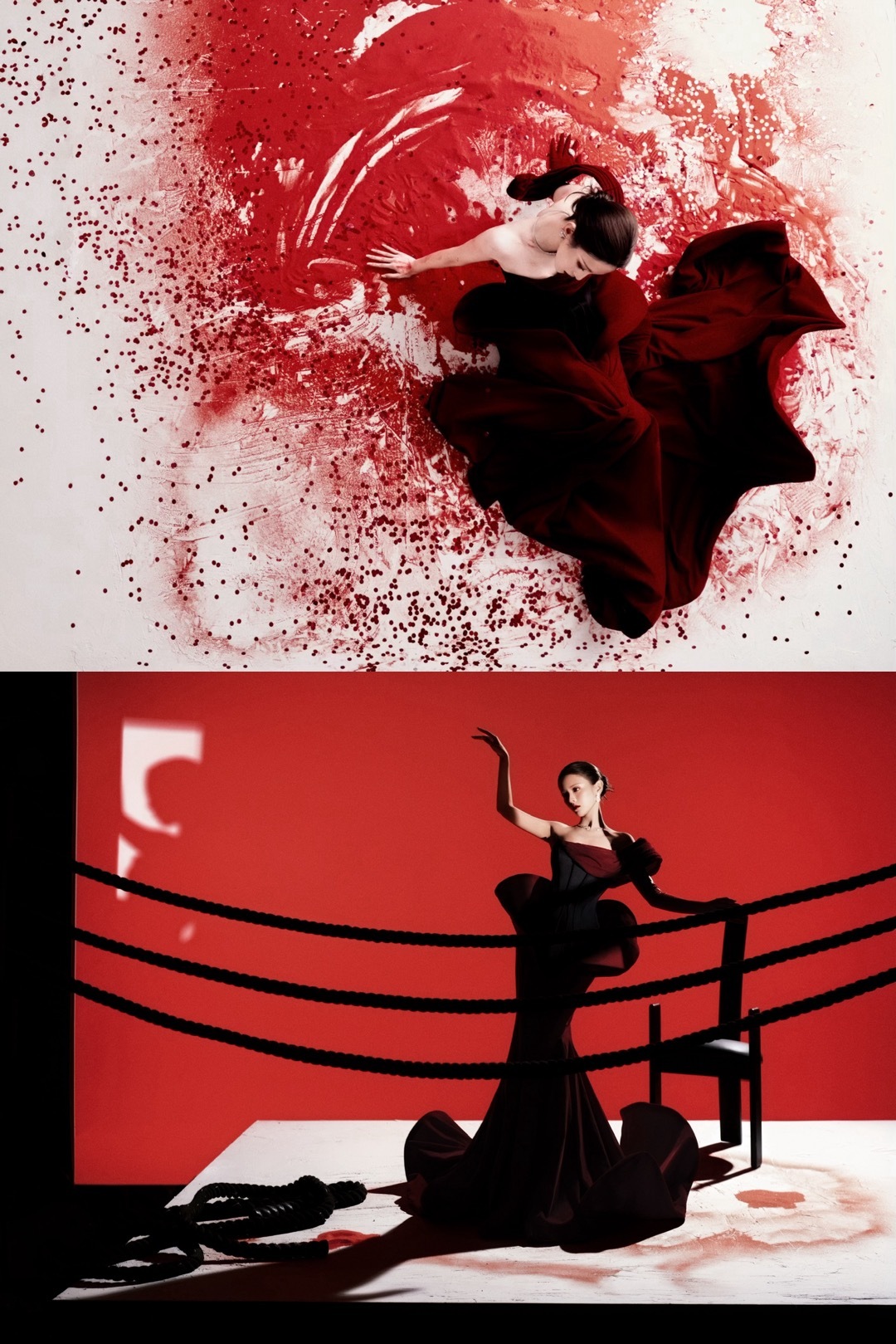 杨超越今日出席2025微博视界大会造型图集,身着LouBe鱼骨绒面拼接礼服,佩戴