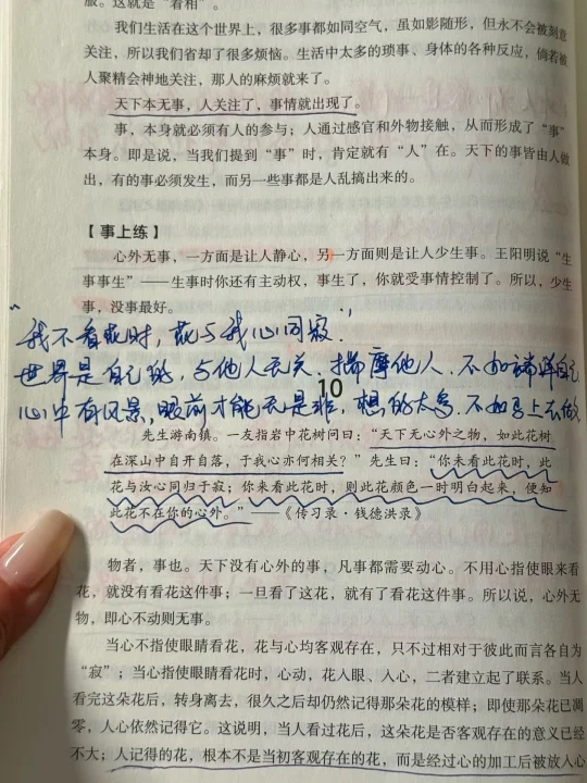 王阳明告诉我,世界是自己的,与他人无关,揣摩他人,不如端详自己,心中有风景,眼前才能无是非,想的太多不如马上去做。