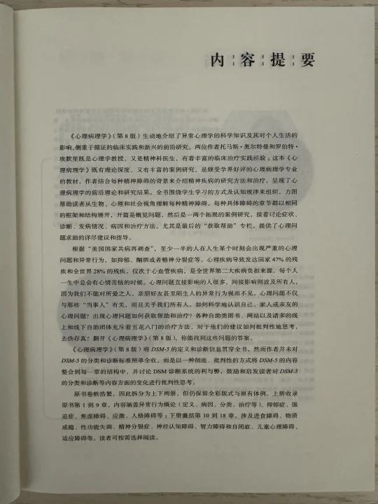 心理病理学不仅仅讲述“疾病”,而是一部帮助人理解“人”的作品。以科学研究为基础,却始终保持对人类情感的温度。两位作者并不把心理障碍当作冷冰冰的分类对象,而是当作人类经验的一部分加以探讨。在他们看来,心理病理学的核心不在于区分“正常”与“异常”,而在于理解心智失衡背后的机制与意义。