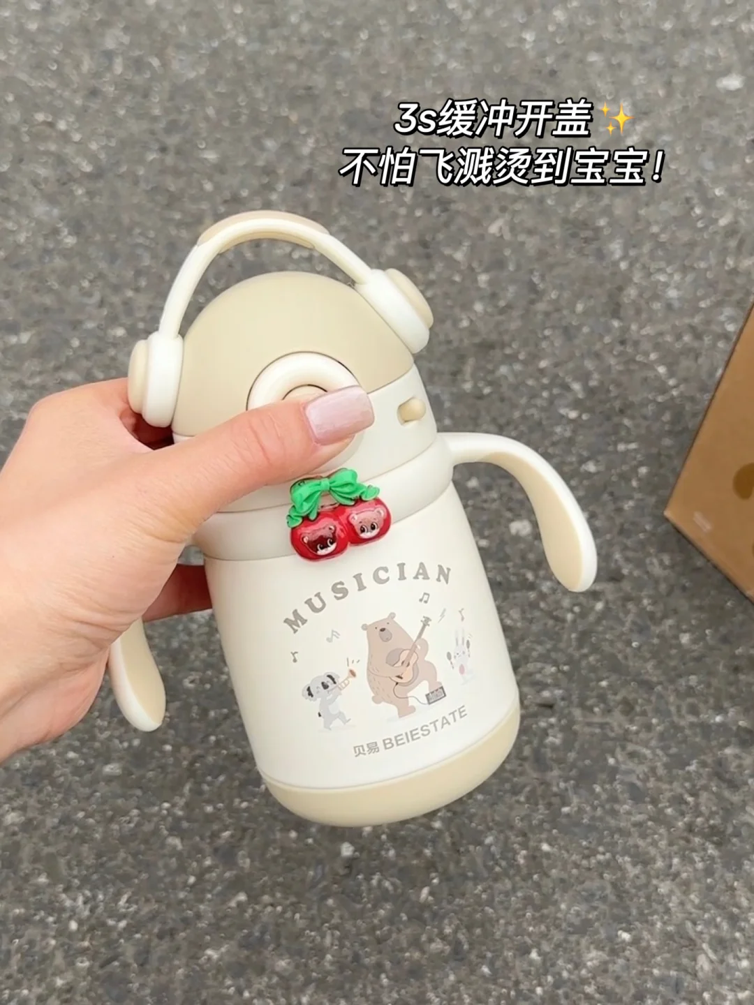 天冷啦,给娃入了👉🏻贝易音乐家保温杯 不管是颜值还是实用性! 我真的都爱了🥰 - 内胆是316L不锈钢材质的, 保鲜锁温无异味! 装果汁牛奶都可以~ 装热水♨️用力摇晃也不喷不漏! 密封性嘎嘎好! - V型阀吸嘴防呛还好吸! 宝宝轻轻一抿就能出水💦 开杯还有缓冲设计,3s排气 防止烫伤宝宝👶🏻 还有安全锁🔒设计 防止娃误开! 细节真的很到位~ - 现在娃每天背着去幼儿园, 自从入了介个保温杯娃喝水都变多啦✌🏻 我真的用一次夸一次!都快去冲!