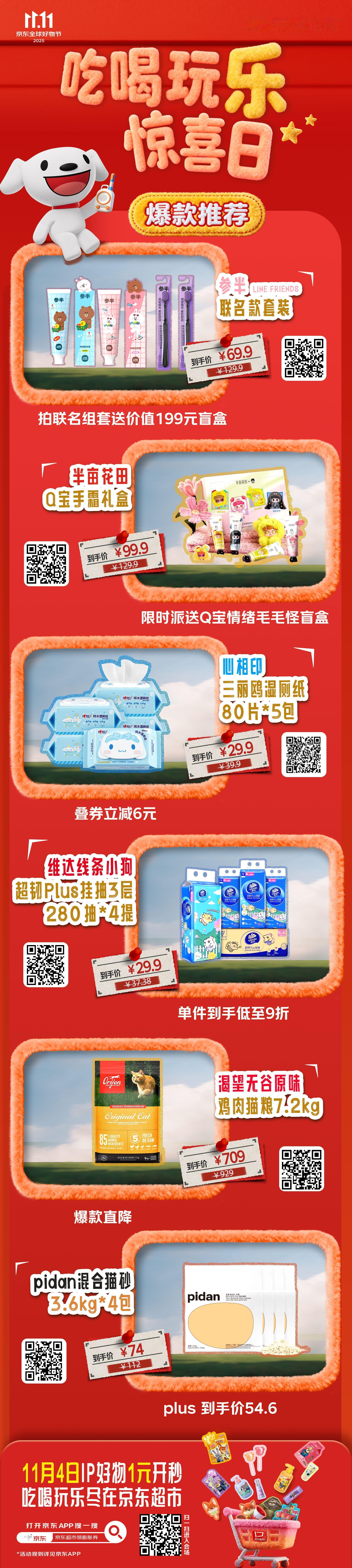 什么??今晚8点「京东超市采销直播间」JDG伞兵空降,这一次竟然是化身胡尼克给大家发福利??这简直就是萌力全开的节奏呀,坐等被宠!!京东超市1元抢吃喝玩乐好物 打开京东搜“京东超市领膨胀券”抢超大福利!IP好物1元开秒。吃喝玩乐尽在京东超市!11.11疯狂动物城进京了 11月4日-6日线下还有疯狂动物城快闪集市,好逛又好拍,各种萌物等你拿下!线上戳【】就可以看伞兵直播哦~吃喝玩乐尽在京东超市 超市11.11又好又便宜 京东11.11 又好又便宜 京东吃喝玩乐惊喜日超市好物5折起