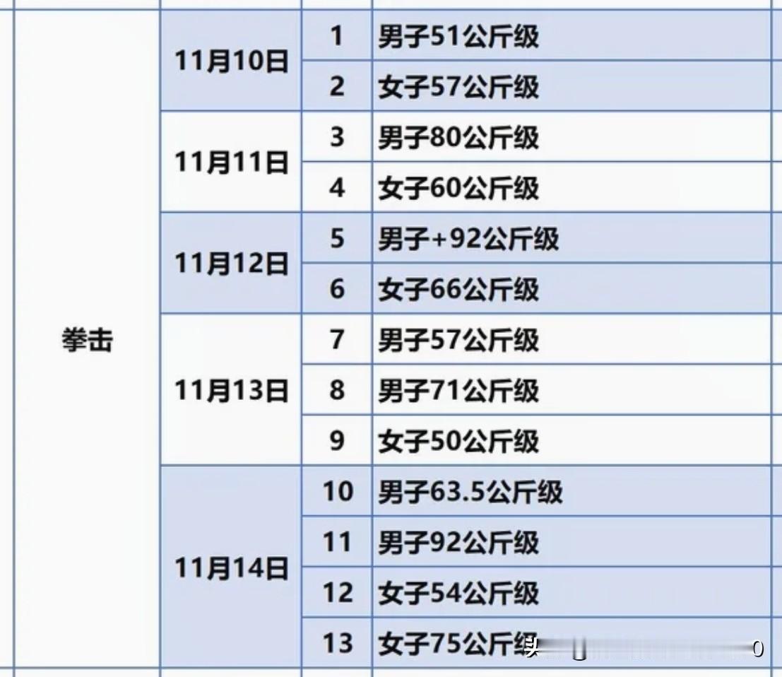 [玫瑰][玫瑰]全运会拳击比赛顶目,共设男子7个级别,女子6个级别,有13枚金牌