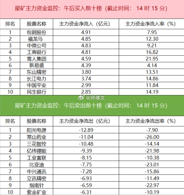【主力资金监控:阳光电源净卖出超12亿】星矿数据显示,今日主力资金净流入银行、环保、电网设备等板块,净流出计算机、有色金属、电新行业等板块,其中计算机板块净流出超97亿元。个股方面,包钢股份主力资金净买入4.91亿元位居首位,福龙马、中微公司、工商银行主力资金净流入居前;阳光电源遭净卖出近12亿元位居首位,常山药业、三花智控、亿纬锂能主力资金净流出额居前。财经理财 今日看盘[超话]