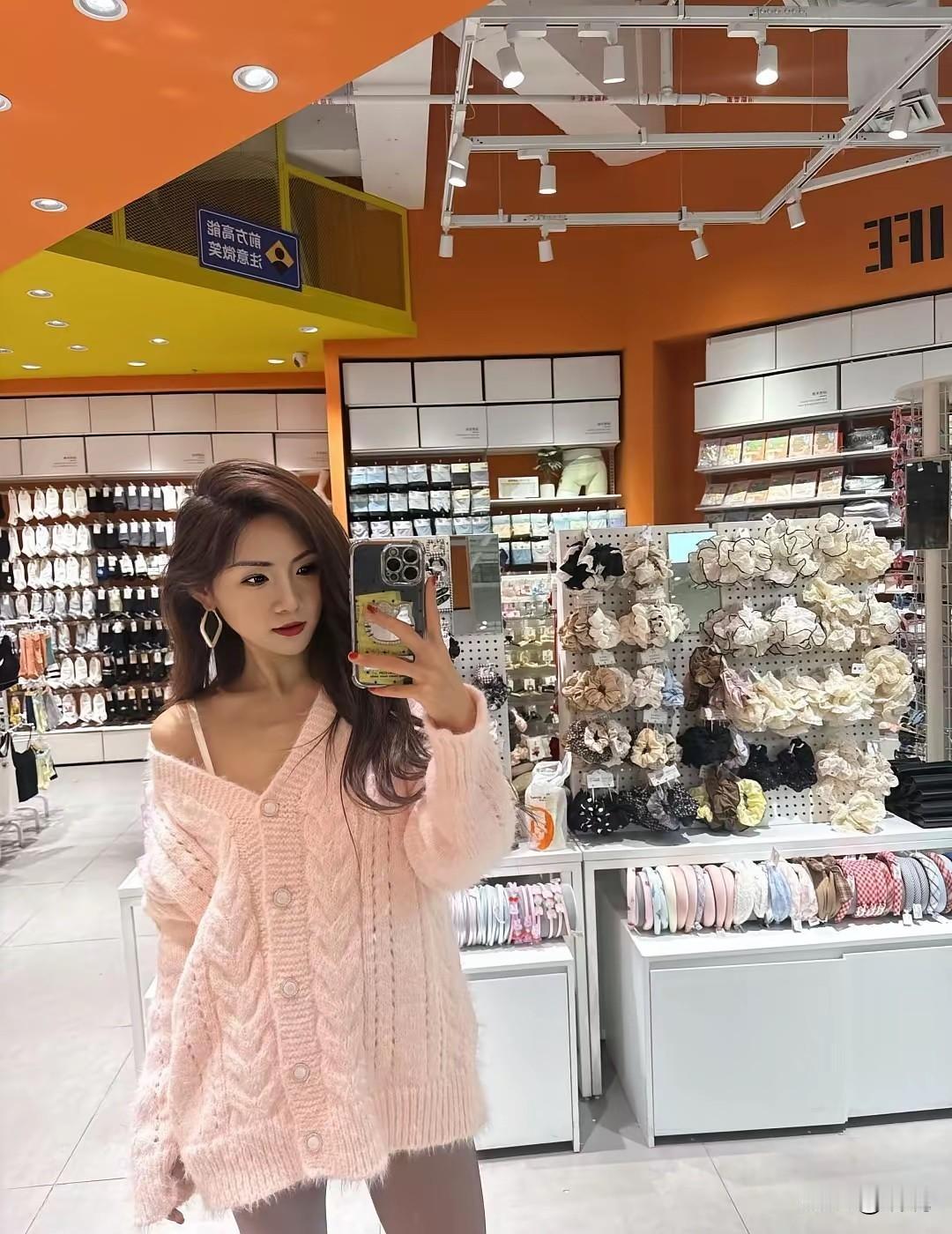 粉色针织衫一穿,人立马软了三分。浅蓝牛仔裤一搭,腿长直接加五公分。不靠大