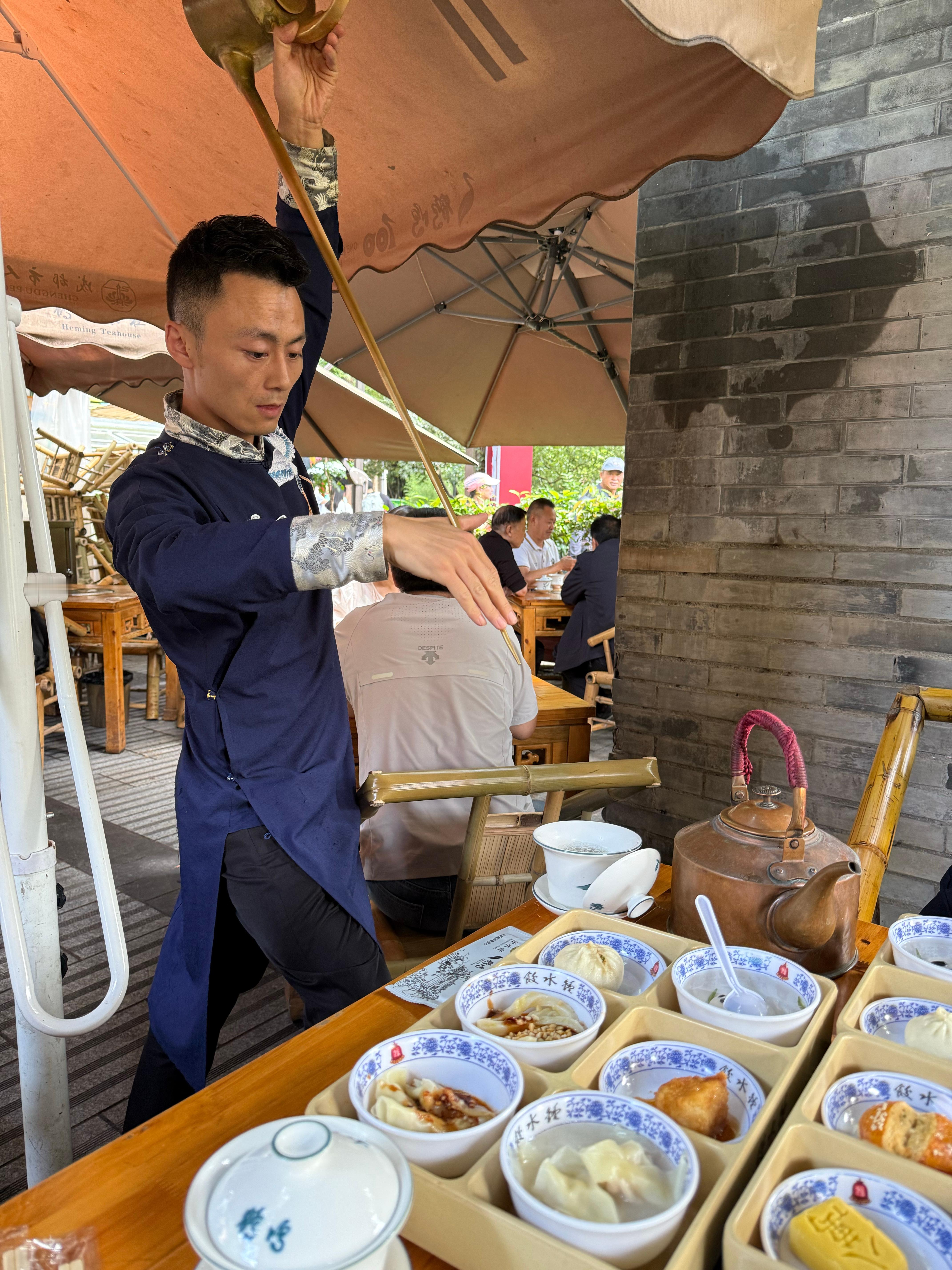 晒太阳 喝盖碗茶感受成都的慢生活