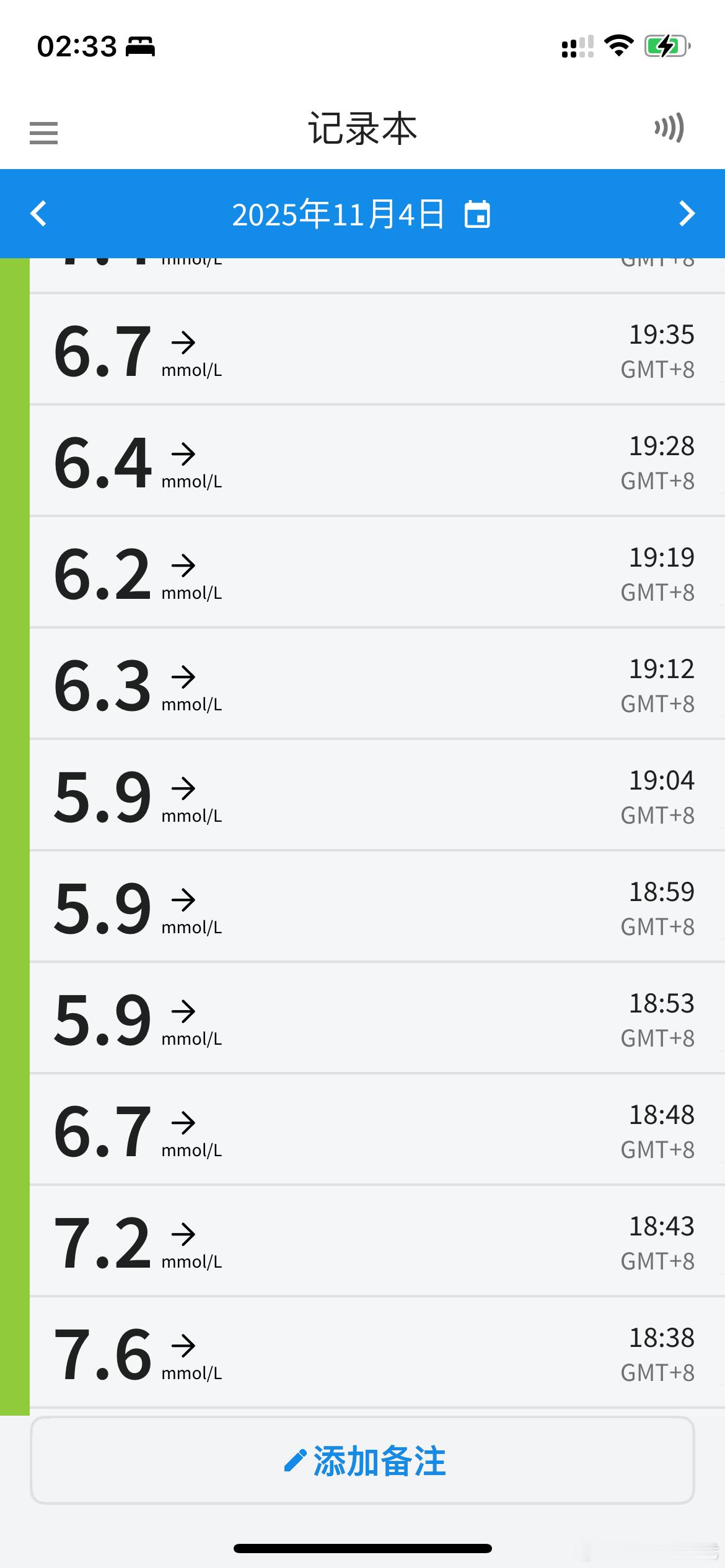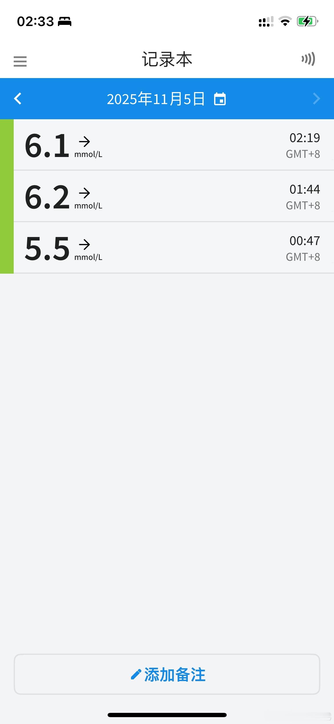 附图我的血糖。因为吃二甲双胍,我的血糖降下来了。现在一天到晚,头多少有点晕儿。因为我以前糖高,现在糖低。而我显然是对自身极度敏感的人。