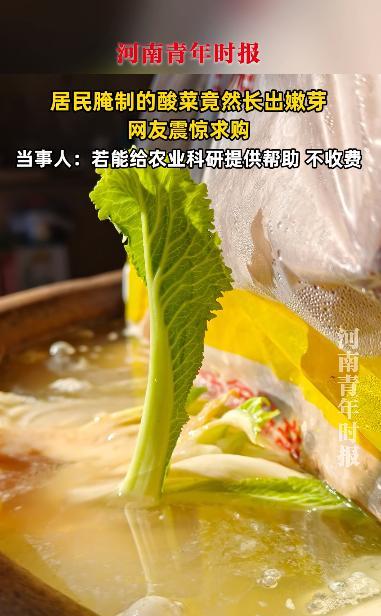 “活久见!”11月1日,内蒙古,一男子在家里用大缸腌制酸菜,结果偶然间查看时,竟发现里面的酸菜长出了嫩芽!男子觉得很稀奇,已经放进盐水里的酸菜为何还能生长呢?网友:这要是卖给专家可赚麻了! 11月的内蒙古已经飘过几场小雪,家家户户的窗台下都摆着腌酸菜的大缸,陈先生家也不例外。 11月1日傍晚,他擦着冻得发红的手走到缸边,掀开厚重的塑料布想看看白菜发酵得怎么样,刚一弯腰就愣住了。 浑浊的盐水里,一棵白菜的菜帮处竟冒出了一抹嫩绿,指甲盖大小的新叶卷着边,像刚从土里钻出来的春芽。 他揉了揉眼睛,伸手碰了碰那片叶子,触感脆生生的,没有半点腐烂的软塌。 他赶紧拿手机拍下来,配了句“这酸菜是要成精?”发到网上,没成想一夜之间就炸了锅。 评论区里成了段子大会,有人调侃“阿姨快收徒,我想学制‘活’酸菜的手艺”,还有人开玩笑说“这是盐水无土栽培黑科技啊,阿姨可以去农科院当博导了”。 更热闹的是私信箱,有网友直接开价几千块想买这缸酸菜,说“收藏也值了”,还有几个农学生留言,问能不能取样做研究。 面对这突如其来的热度,陈先生很快发了条回应视频。 镜头里他指着缸里的嫩芽,语气挺实在,拍视频就是觉得稀奇,想弄明白咋回事,从来没想过卖钱,要是真能帮着搞农业研究,我一分钱不要,直接送过去。 他还特意提到中国农科院的官方账号,这份敞亮让不少网友点赞。 李教授解释说这其实是植物的“绝境求生”,能发芽的关键是白菜的“顶端分生组织”,也就是菜帮和根部连接的芽点没被破坏,而且没完全休眠。 陈先生家室内有供暖,温度大概18℃,刚好达到芽点萌发的适宜温度,加上盐水浓度没达到抑制生长的10%标准,就给了芽点“苏醒”的机会。 它长芽靠的是白菜自身储存的养分,不是从盐水里吸收营养,李教授打了个比方,就像人饿肚子时消耗储备的能量,撑不了多久。 果然如她所说,陈先生观察到,那嫩芽长到第五天就停住了,叶片也开始发黄。 更重要的是,李教授提醒,盐水浓度不够会让细菌大量繁殖,亚硝酸盐超标的风险很高,再稀奇也不能吃,吃了可能闹肚子甚至中毒。 从窗台下的一缸酸菜,到全网热议的话题,再到对科研的支持,这件事就像冬天里的一抹绿,透着生活的鲜活。 那棵在盐水中冒头的嫩芽,让我们看到植物的韧性,更看到普通人的善意。 不过热闹归热闹,李教授的提醒得记牢。 生活里的“活久见”确实有趣,比如发芽的酸菜、长须的红薯,但背后可能藏着安全隐患。 保持对生活的好奇心没错,但更要理性看待,就像陈先生那样,好奇它的原理,更清楚它不能吃。 毕竟,再新奇的发现,也比不上身体健康重要。