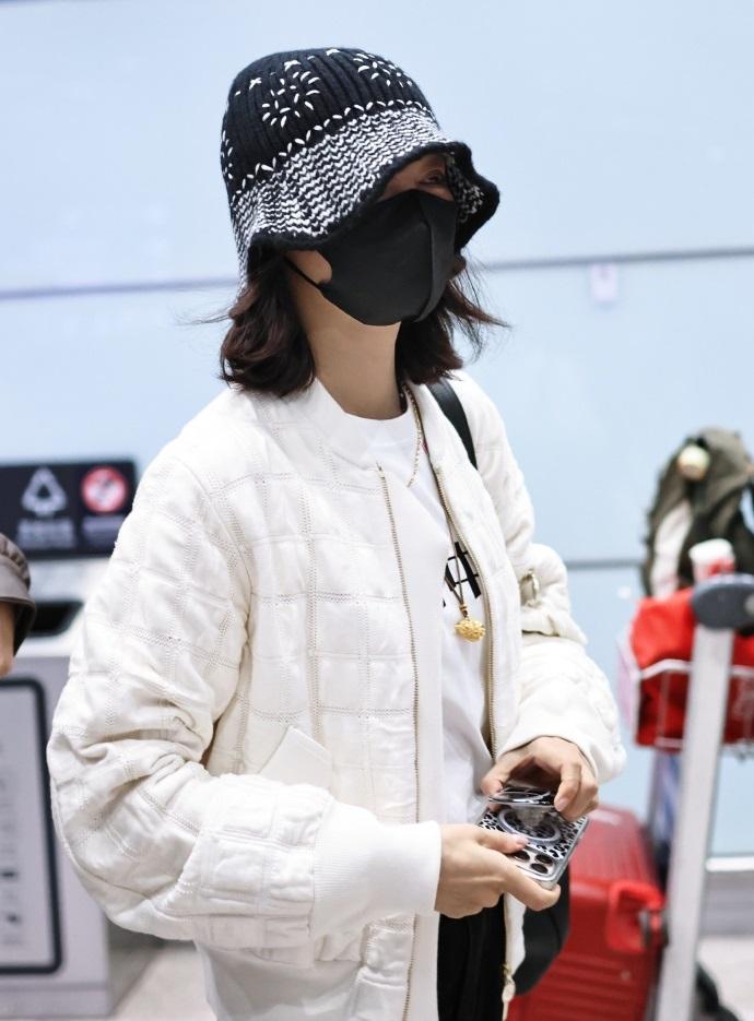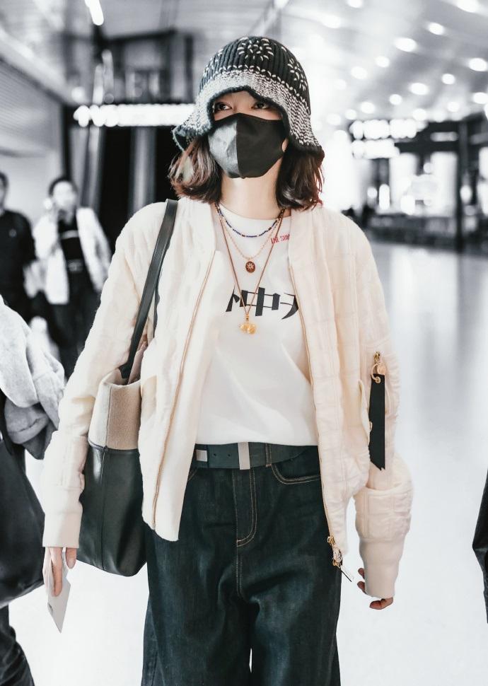 最近辛芷蕾现身北京机场,她这次搭配的很有潮流之美,看起来格外的年轻。 辛芷蕾里面穿字母风T恤,外面套装白色的短款外套,两件衣服叠穿起来效果很不错。 她下身搭配深灰色牛仔裤,脚踩黑色的靴子,增添了干练气质,又显得非常有型,还特别的有气势。 辛芷蕾头戴漂亮的印花毛线帽,还搭配了黑色的口罩,看上去特别的可爱。 她留着迷人的卷发,脖子上戴着金色的吊坠,变得越来越高雅了。 辛芷蕾挎着黑色的皮包,彰显出洒脱迷人的魅力。
