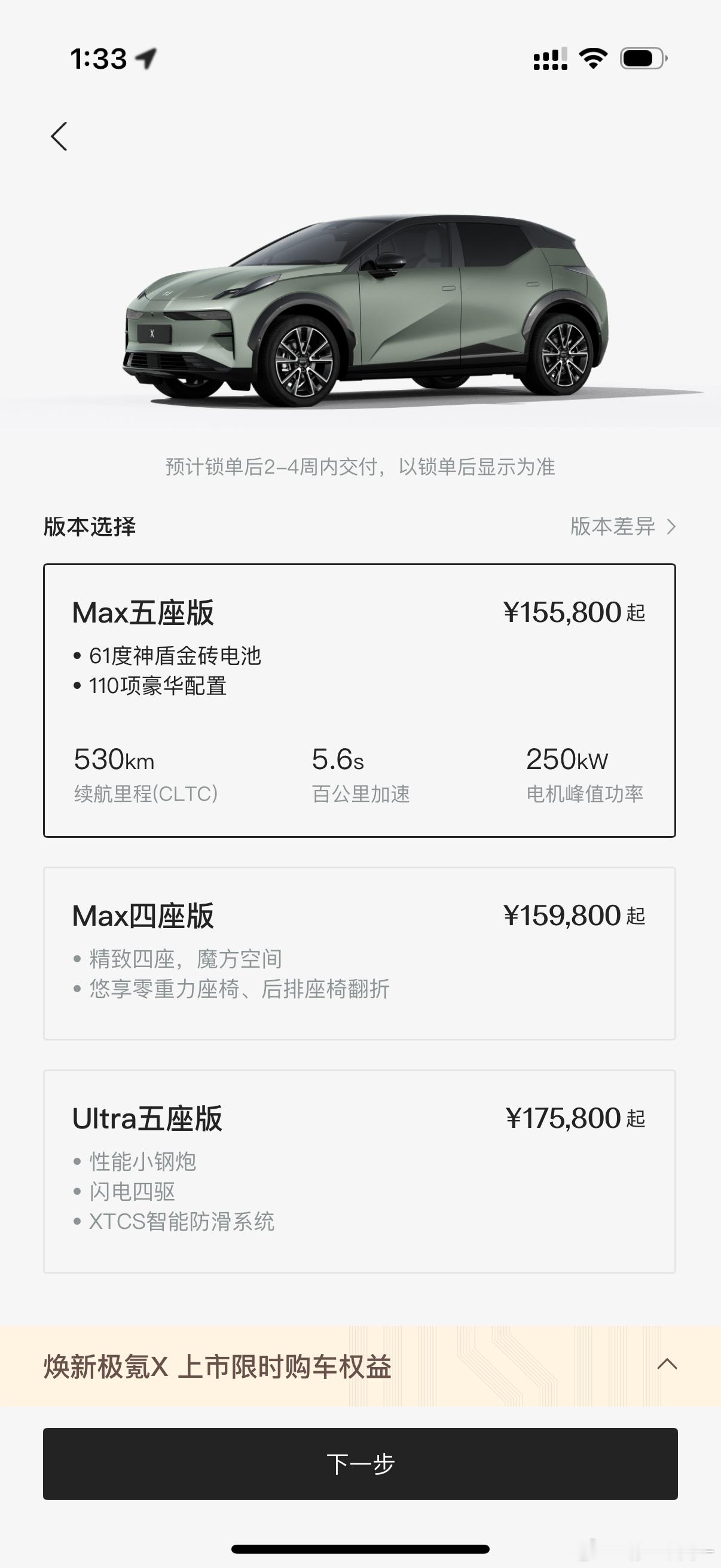 新增了一个西雅图绿车漆,座椅也升级成了4D零重力,这回统一标配了电动滑屏