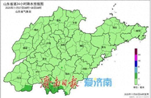 山东省气象台预计,6日夜间至8日,山东省自西向东有一次较明显降雨过程,鲁南和半岛地区有小到中雨,其他地区有小雨。