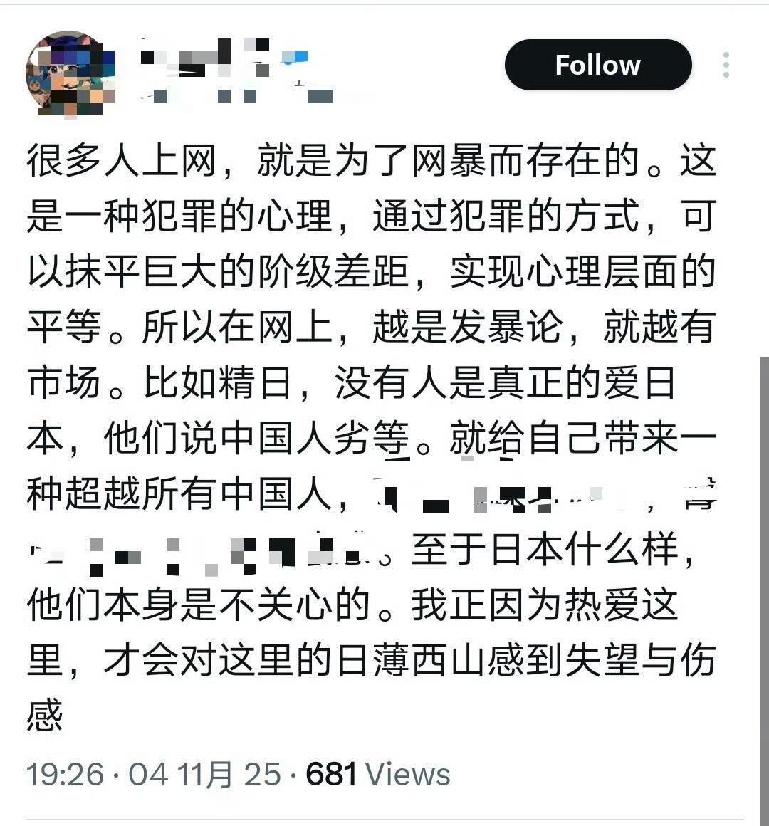 他真的理解疯狂摸黑中国的人的心态