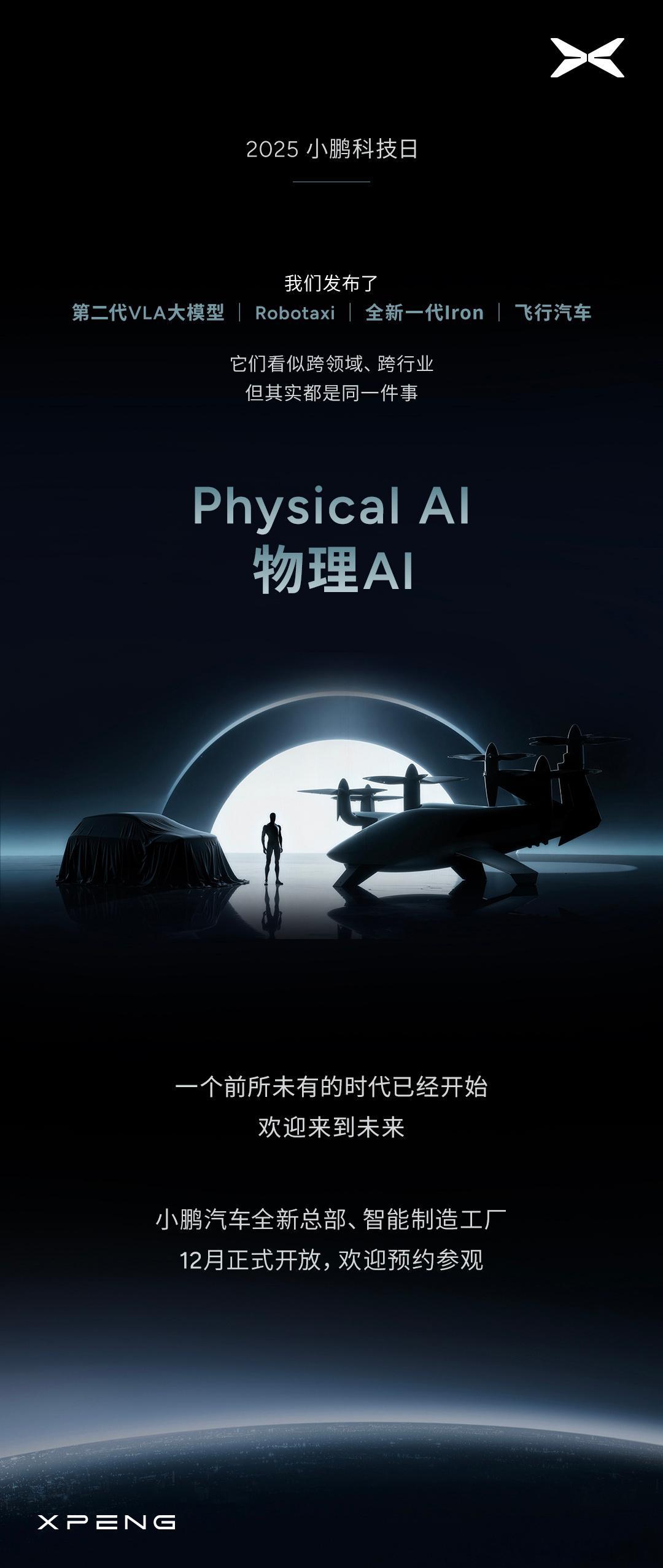 小鹏第二代VLA大模型、小鹏Robotaxi、小鹏全新一代IRON、汇天飞行汽车