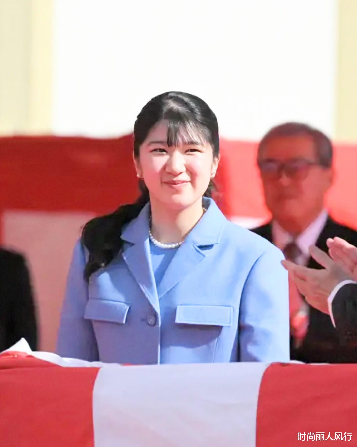 日本爱子公主也开始单独营业了,已经23岁的爱子公主大学毕业后,如今也是认真履行皇室职责。日前,爱子公主出席了出席北极科考船下水仪式,她一身蓝色的职业套装亮相,还佩戴了珍珠项链,这样的风格真是有些显老气。