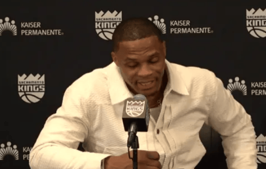 虎扑11月06日讯NBA常规赛,国王121-116战胜勇士。赛后,拉塞尔-威斯布鲁克接受了媒体采访。