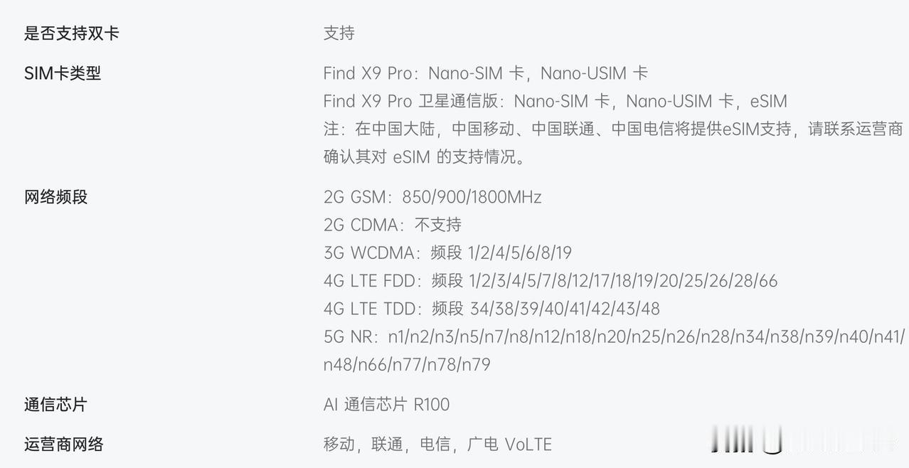 首款国产品牌 eSIM 手机开预售了,OPPO Find X9 Pro 卫星通信版(PLG120),16GB+1TB 售价 6999 元,支持三大运营商 eSIM ,北斗卫星短信,仅绒砂钛配色。 不过 OPPO 这个也保留了实体 SIM 卡槽,既可以用实体 SIM 卡,也可以用 eSIM,不过依旧是双卡双待制式,就别想插两张实体 SIM,再开一个 eSIM 三卡三待了。[吐舌]
