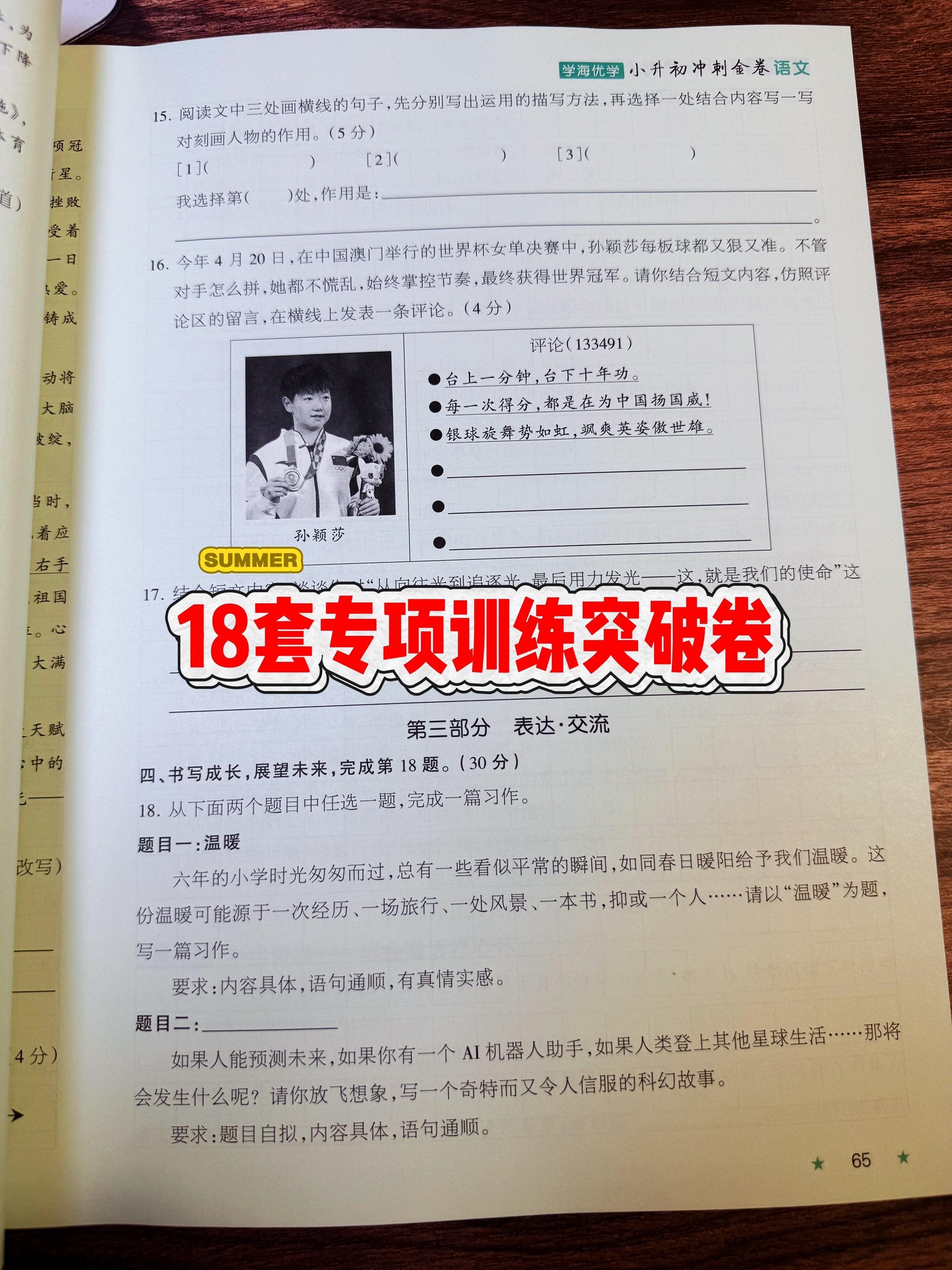 家里有小升初备考的学生宝妈注意啦❗。宝妈们注意了, 你永远也考不过一个每周练一张小册卷的孩子。 死科这套卷,小升初考场直接稳如抄答案!二零二六小升初考纲已经锁定四十个专题,学海优学、冲刺金卷全部精准覆盖数学解方程、语文病句修改英语的核心词汇。每个考点一张卷,练透一类是一类!扫码看讲解自动批改错题整理功能齐全!现在下单享七折,再送基础知识手册!点击小黄车,赶紧让孩子练起来!