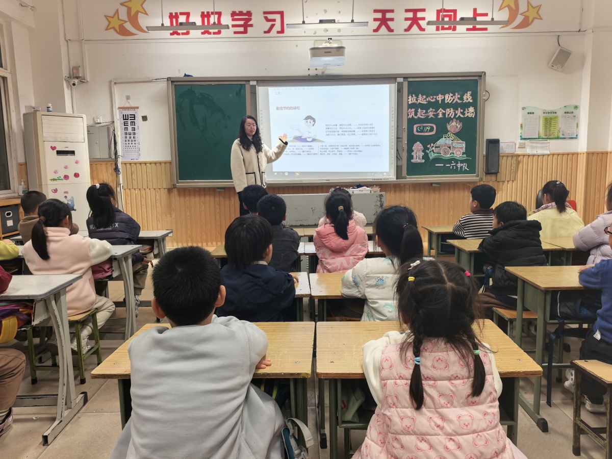 队会上,老师们通过生动的PPT、趣味动画和真实案例,向学生讲解了火灾的危害、日常防火注意事项,以及如何正确拨打119报警电话。老师们还从正确使用打火机、远离易燃易爆物品,到厨房用火安全、电器使用规范,细致拆解生活中易被忽视的火灾隐患。在“消防知识小问答”环节,“火灾报警要讲清哪些信息?”“身上着火怎么办?”等问题引发热烈抢答。