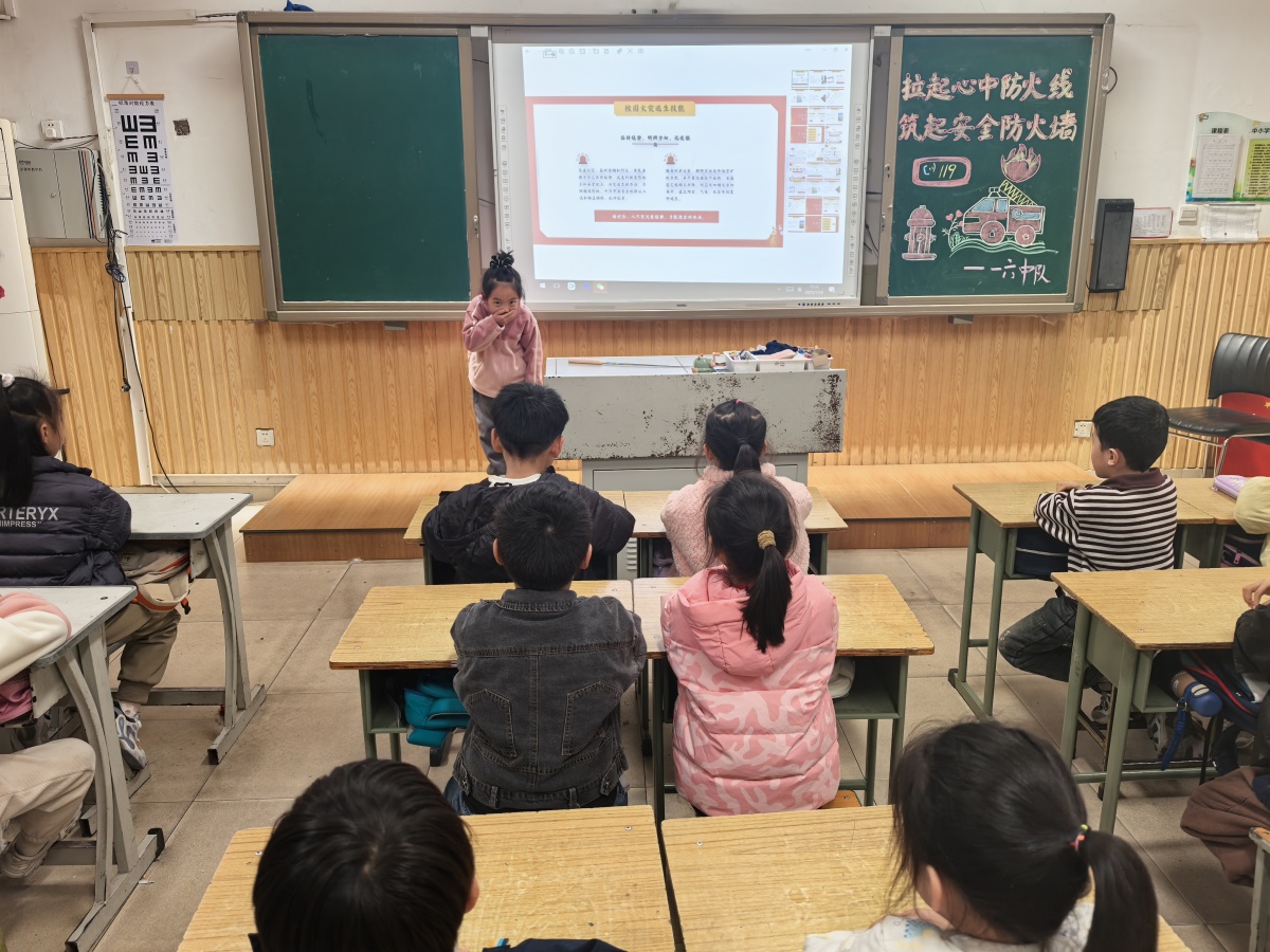 互动环节,学生们积极参与“火灾逃生小演练”,学习了用湿毛巾捂住口鼻、弯腰低姿前行等逃生技巧。此外,大家还围绕“身边的火灾隐患”展开讨论,纷纷分享自己发现的安全问题及解决办法。学生们在互动中巩固知识,筑牢安全认知。