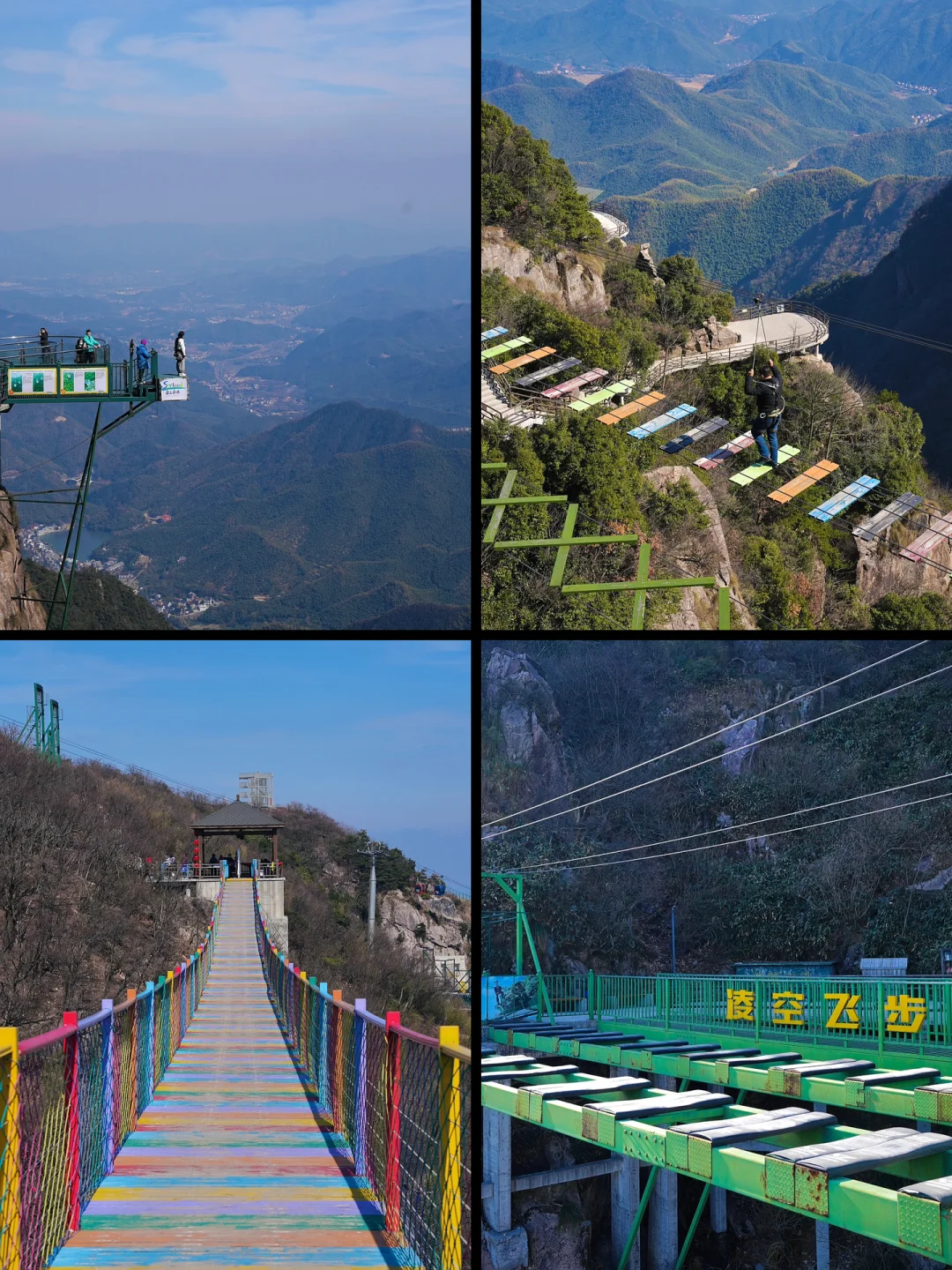 索道上山——凌空飞步——悬崖秋千——玻璃栈道——天空之阶——步步惊心——悬崖蹦极——云海栈桥——彩虹滑道——索道下山