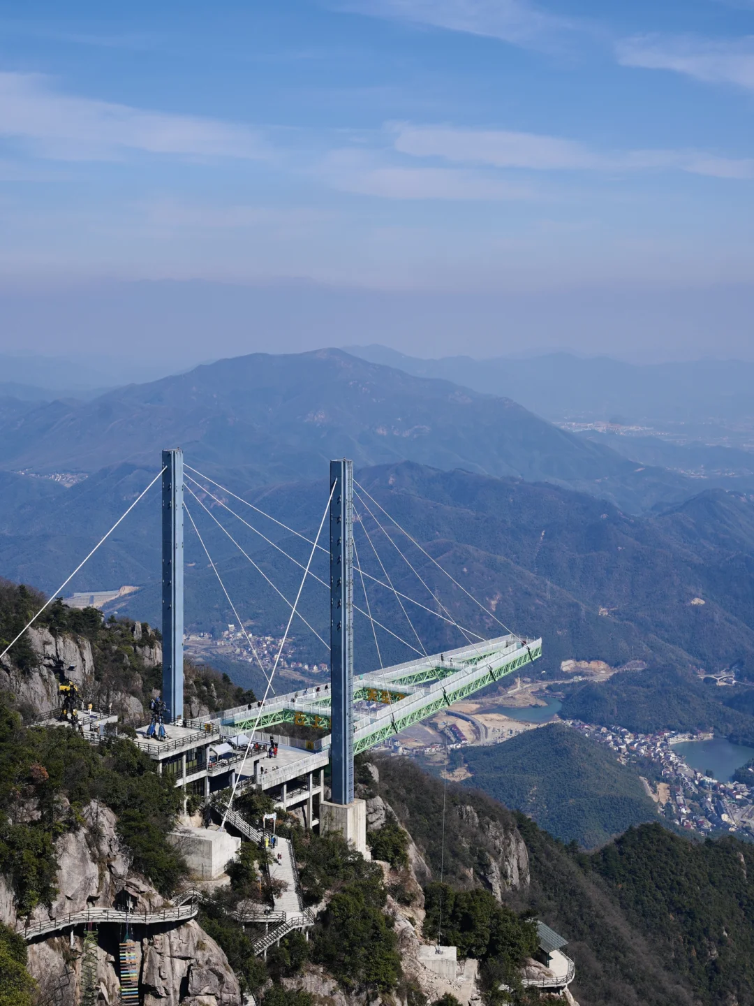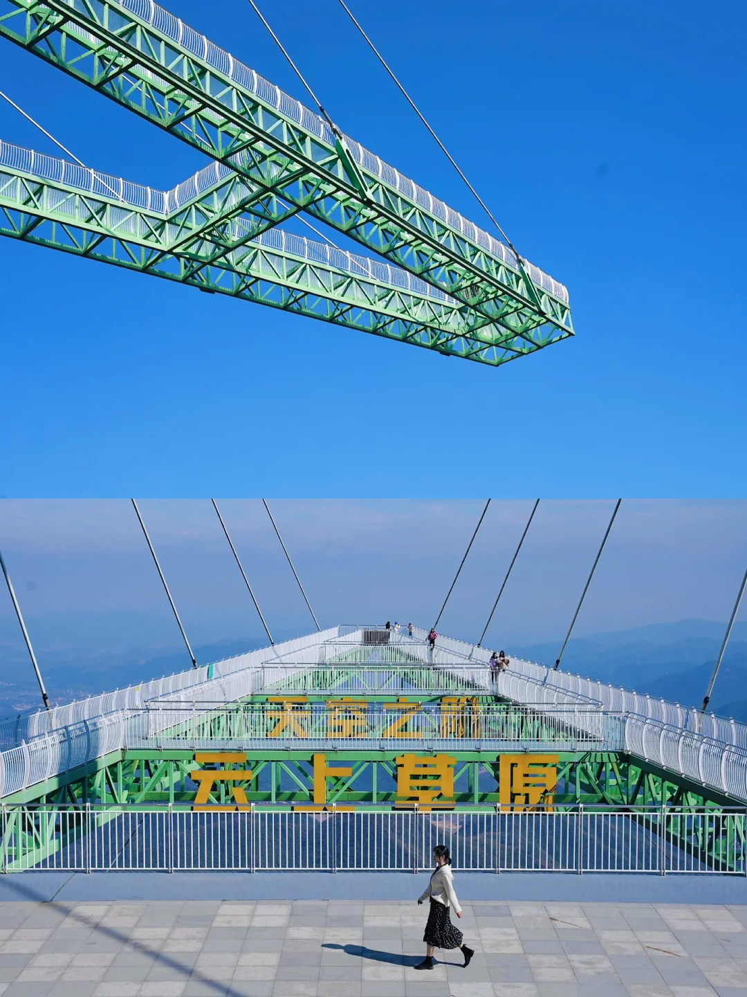 观景C位视野开阔,悬挂在天空中的A型全透明玻璃走道,走在上面仿佛置身云端,运气好还能看一场浪漫云端日落