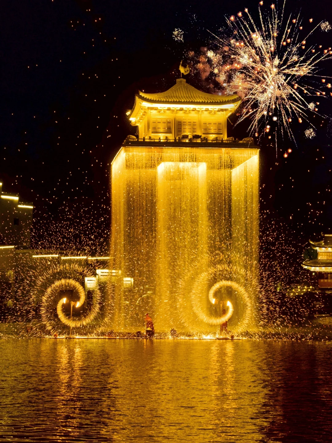 ❹看水上打铁花表演,感受非遗文化的底蕴和魅力~
