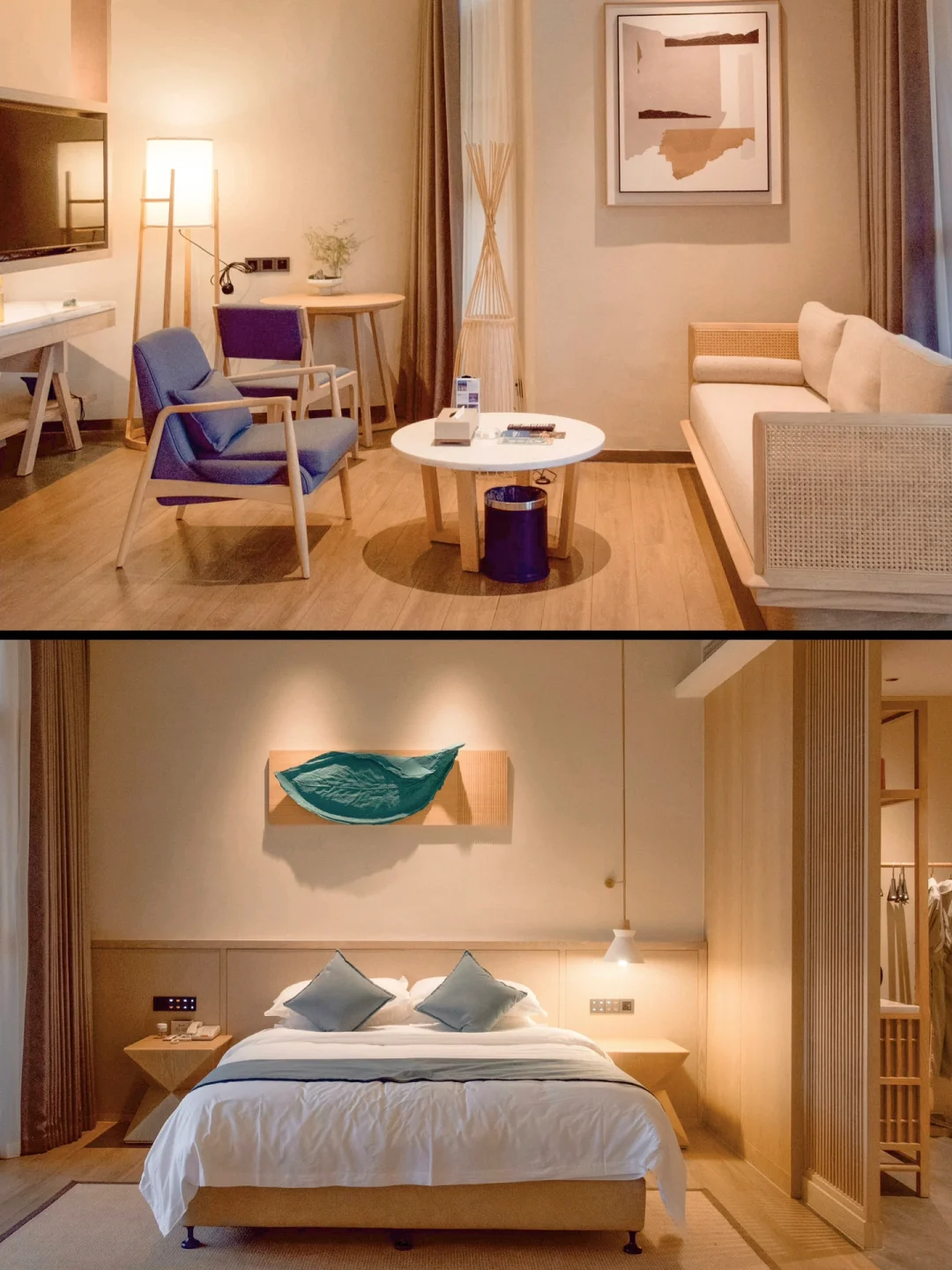 建议安排2天1夜行程,入住景区内酒店度假区门票免费🆓我们选了独栋式背靠茶园的茶圣精舍!居住环境非常安静~房卡上有接驳车号码,提前预约车开到门口接送!附近是茶圣博物馆可以顺路打卡