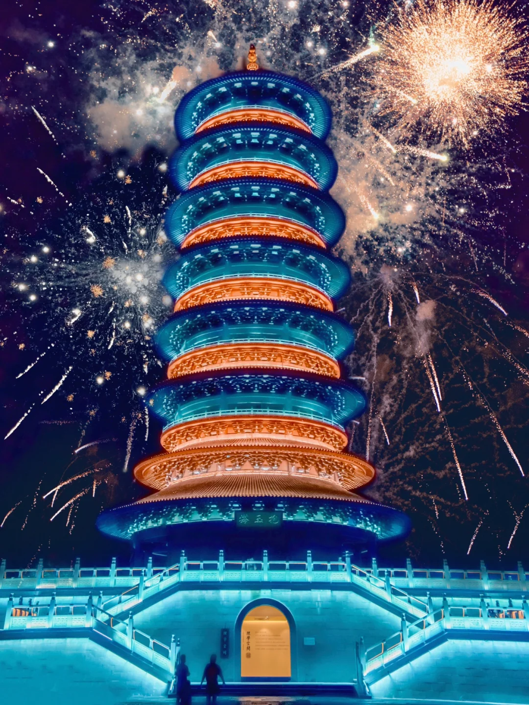 ❺穿汉服GET与抱玉塔夜景同框机位,真的超级出片