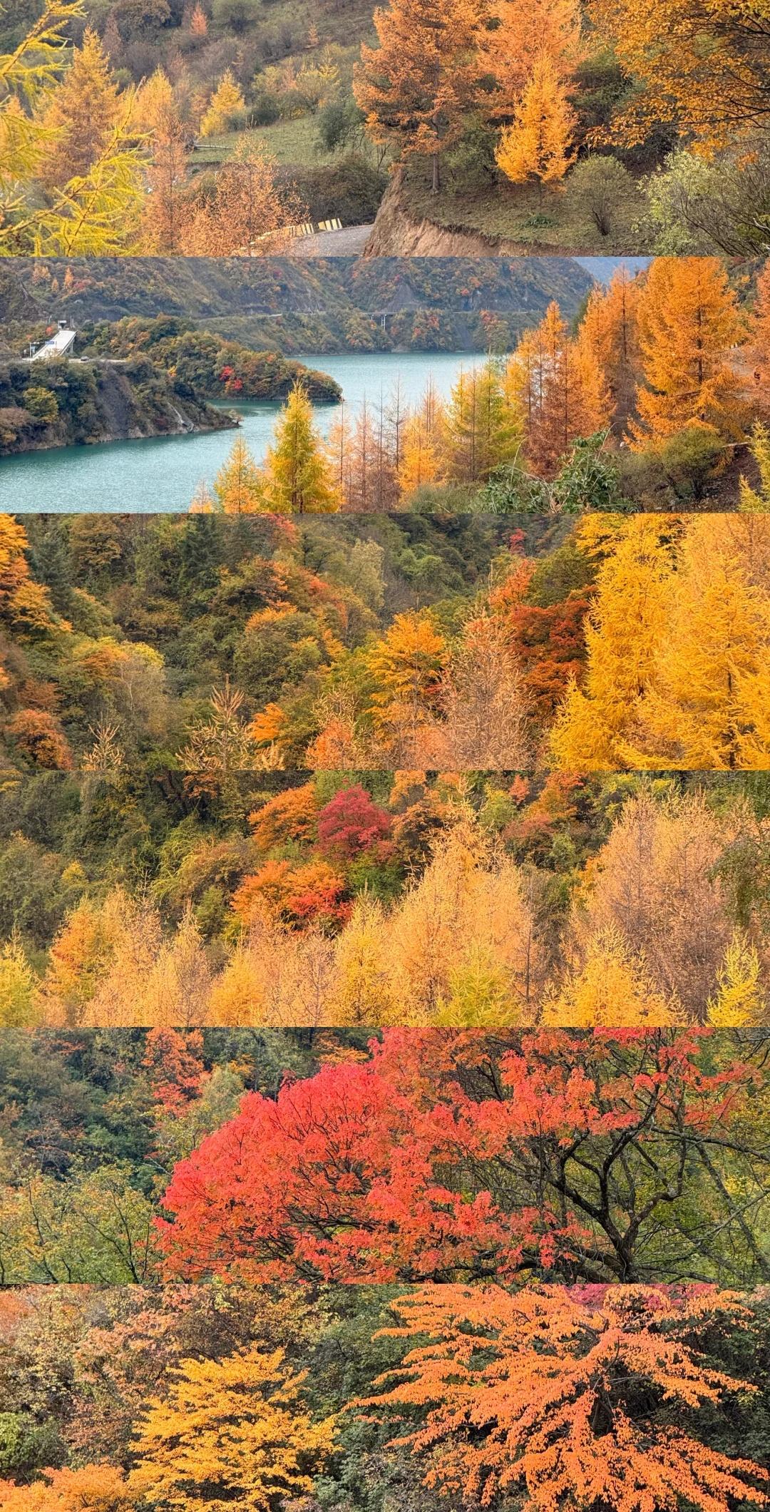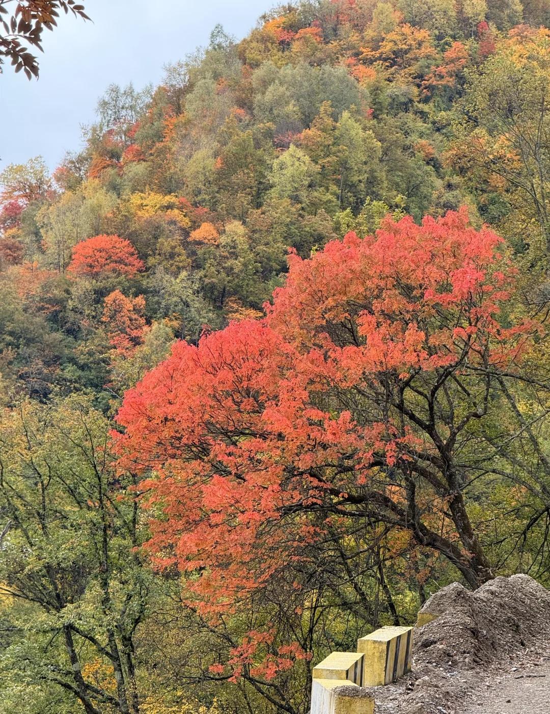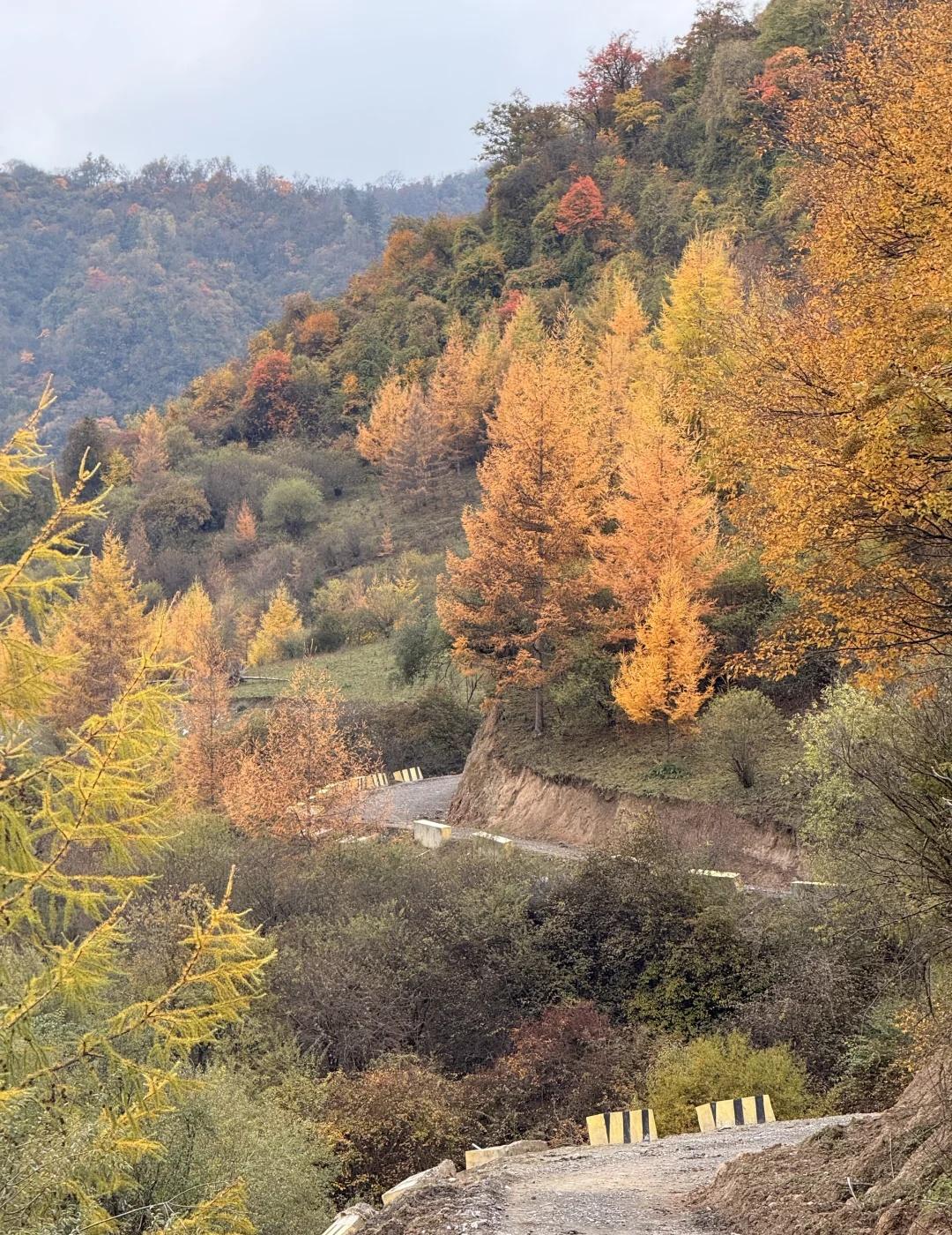 恰逢最彩的时候,地址见最后两张图 从成都出发,建议导航(扒昔加古寨停车场),下高速口马上有个充电站,特斯拉充满电出发,到这里再充满电就可以满足回程(回程表显只掉了200公里),可以在扒昔加古寨住一晚。 古寨继续往里走徒步可以看到非常漂亮的彩林,一路走到河沟侧就可以往回走了。 想拍大一点的景色,可以去古寨对面的247国道,开车一路到白马收费站上高速回程,在国道上有三个地方的景色还可以,图上标记了两处,继续向前有一处比较大的停车的地方,会有本地人卖烧烤,景色也不错。