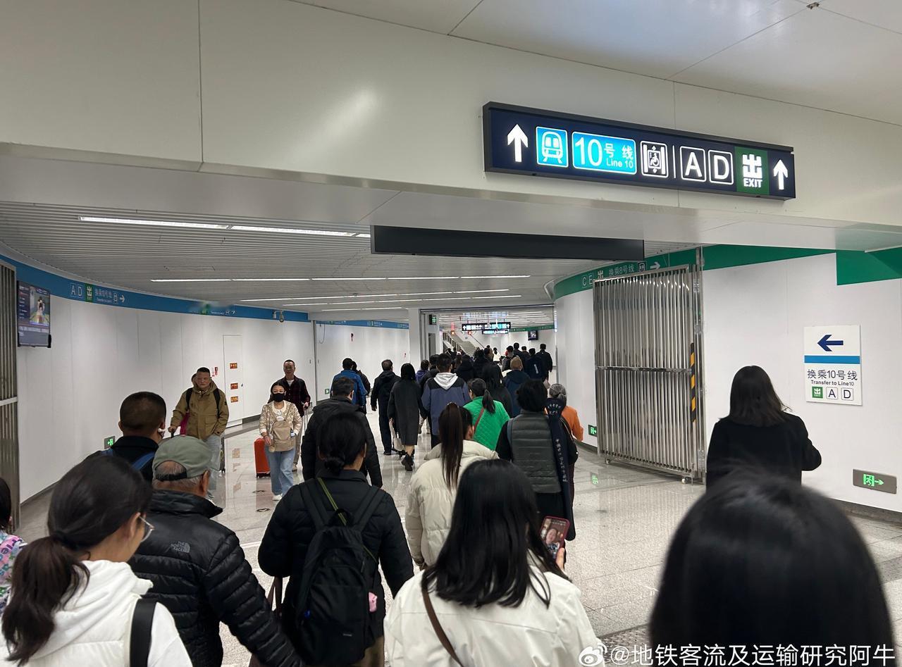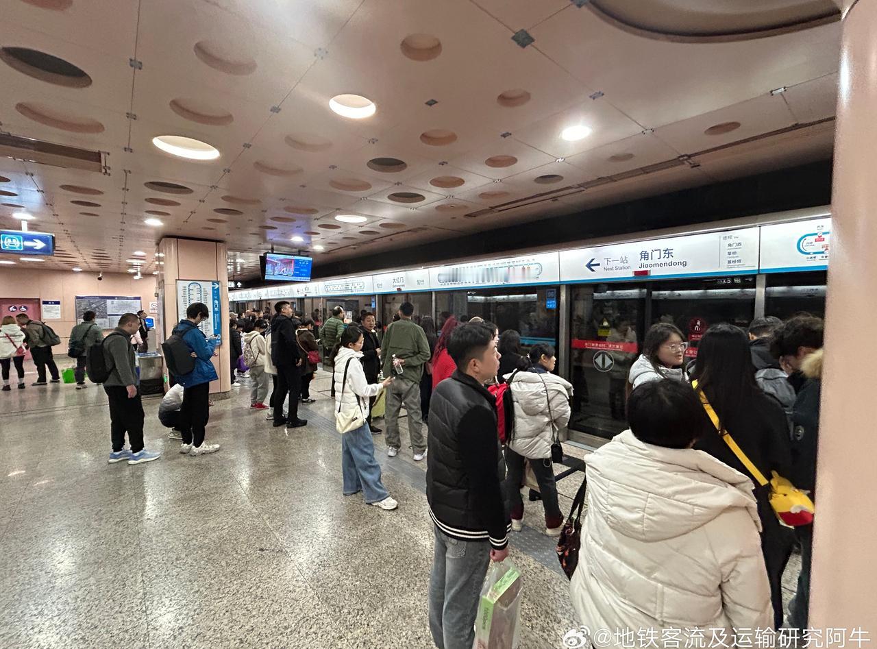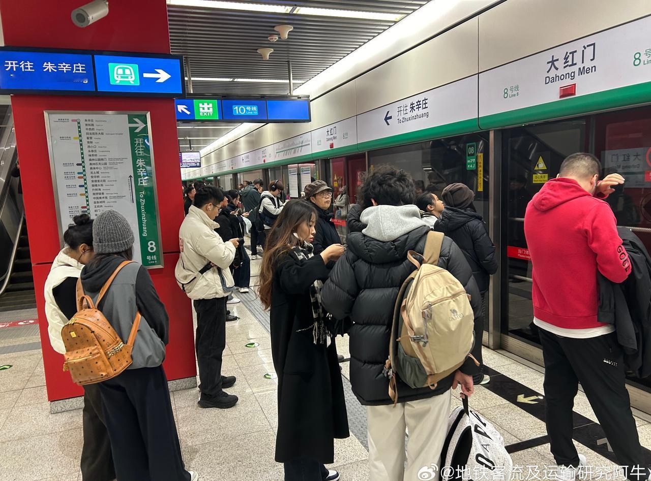 网友:2025年11月8日,北京地铁8号线大红门站开通中轴线最后一块拼图完成✅ 图1: 北京地铁8号线木樨园站,朱辛庄方向候车客流; 图2: 北京地铁8号线海户屯~大红门区间; 图3: 8号线大红门站,朱辛庄方向候车客流; 图4: 大红门站8号线换乘10号线客流; 图5: 北京地铁10号线大红门站,内环角门东方向候车客流。开通换乘后,10号线大红门站客流显著提升。